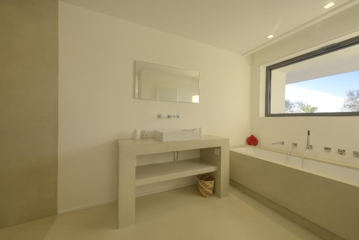 Le premier étage se compose également de la chambre principale, donnant sur le jardin et une terrasse, avec lit double (200cm), A/C, TV écran plat, dressing, coin bureau et salle de bain avec baignoire, douche, lavabo double, toillet séparé.