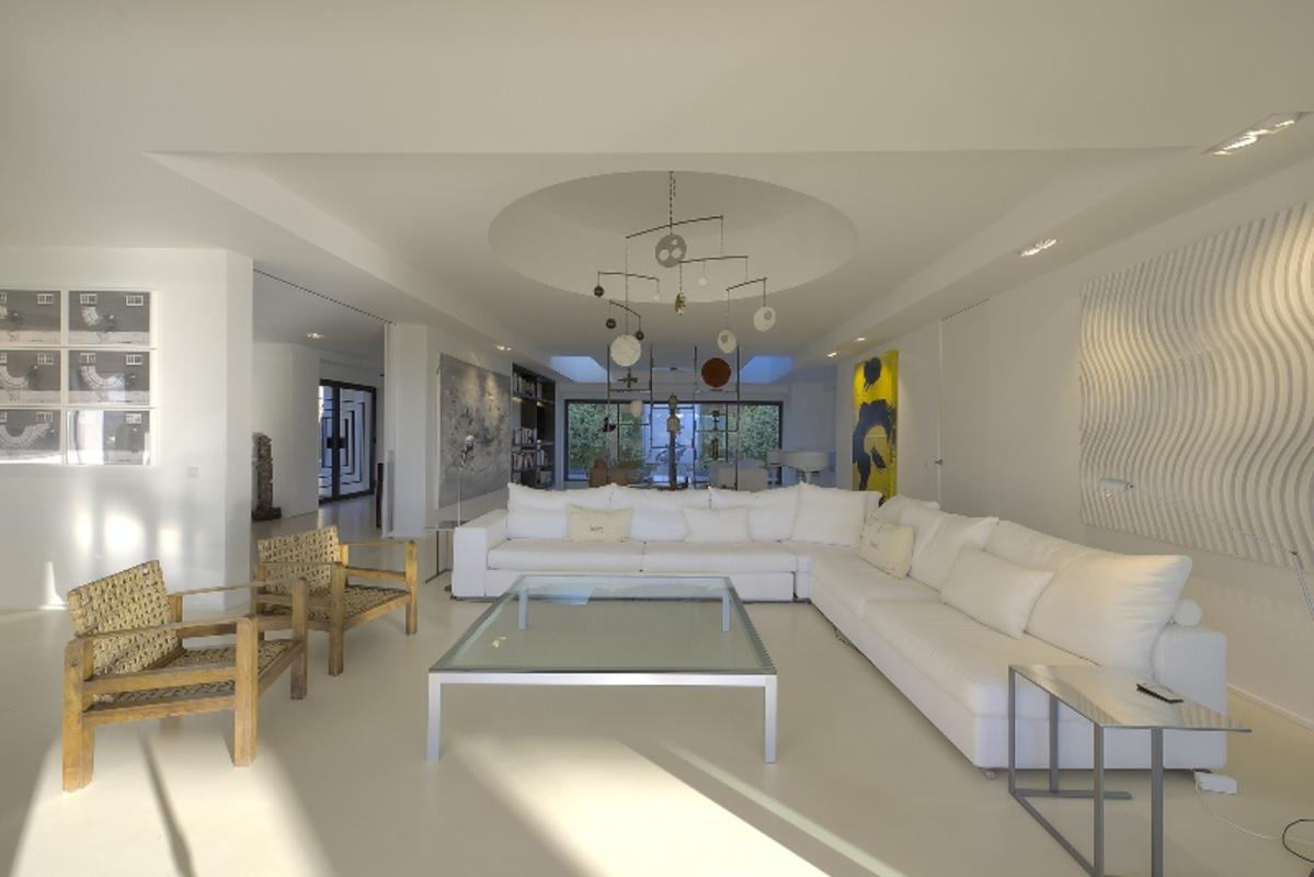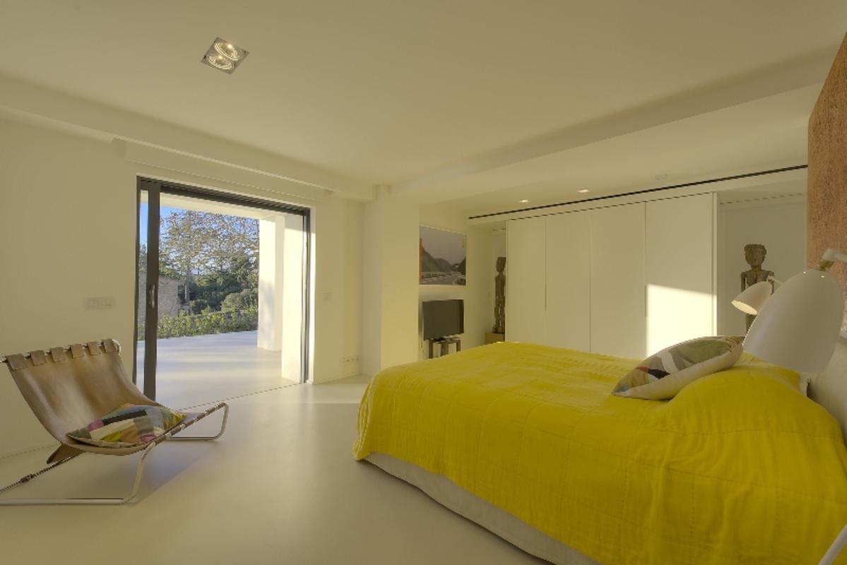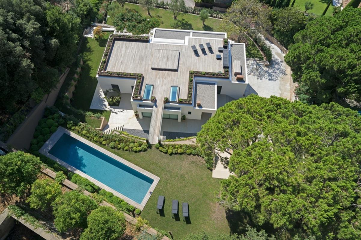 Les 3500m² de terrain arboré bénéficient d’un beau jardin, de terrasses et d’une piscine de 17m. Au premier étage, la villa dispose d’un grand salon donnant sur une terrasse avec vue sur la mer et d’une bibliothèque avec TV écran plat, piano à queue, sonorisation Bose.