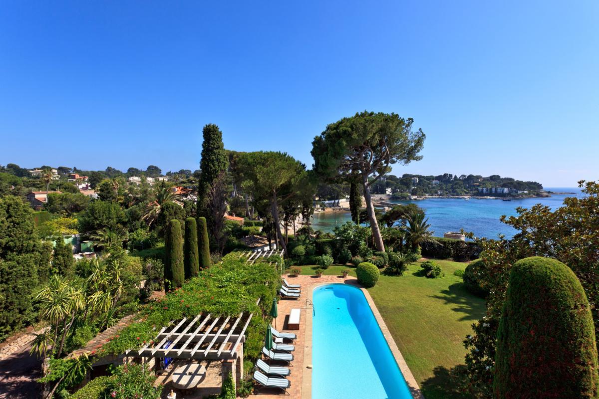 Superbe propriété de caractère datant du XIXe entièrement rénovée avec prestige. La villa de 600 M² se trouve au cœur de son parc de 7000 m² avec des arbres centenaires. La vue est magique sur la mer au Cap d’Antibes et jusqu’à Cannes.