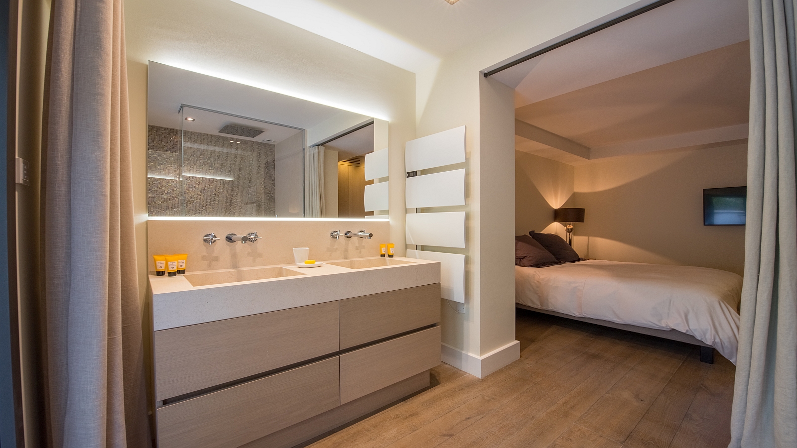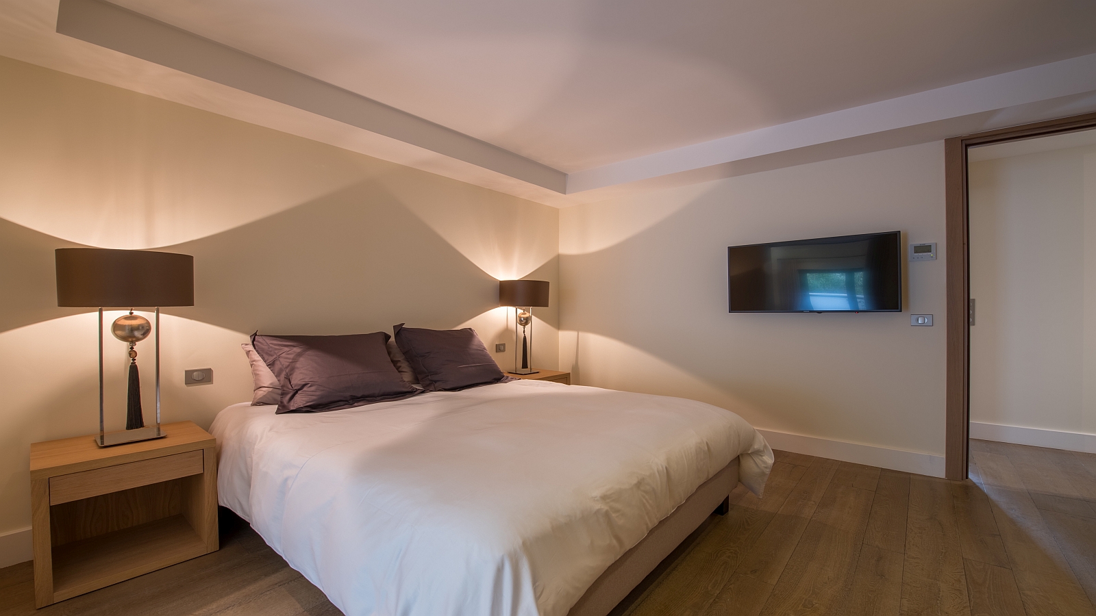 3 chambres doubles, chacune avec salle de bain et télévision et accès à un patio.