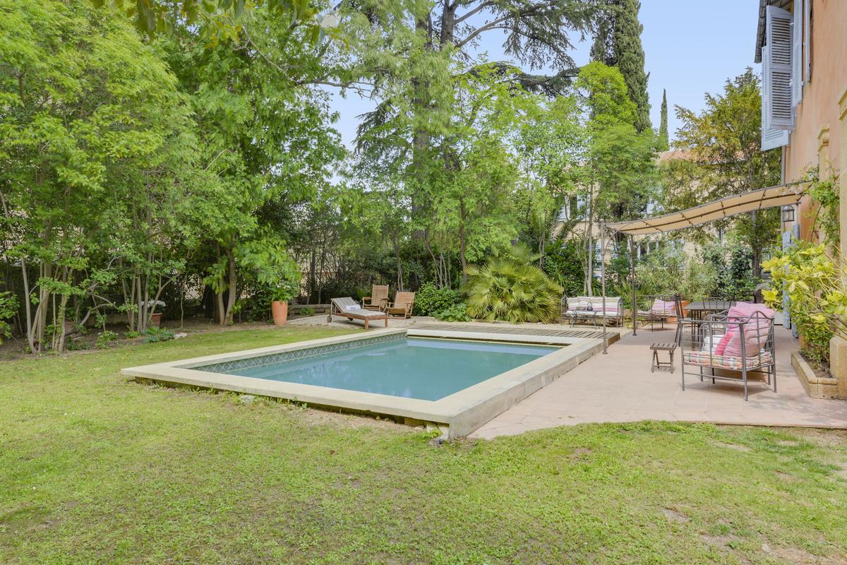 La route principale du Cours Mirabeau est à moins d’un kilomètre et vous aurez l’impression d’être à la campagne ! Située dans un quartier résidentiel au sud du centre historique, près du parc Jourdan, cette maison de 200m2 est un havre de paix et de verdure au cœur de la ville. Protégée par les grands arbres du jardin de 3000m2, la piscine 4x7m dispose d’un système de contre-courant. Il y a une pergola où vous pouvez déjeuner à l’ombre de la piscine.