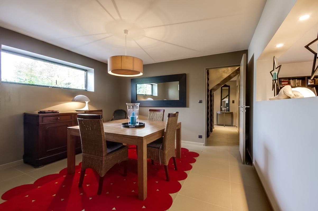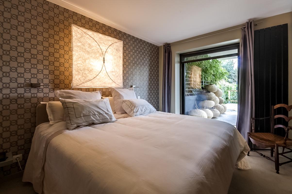 La maison est presque entièrement de plain-pied, organisée autour des espaces extérieurs, avec une chambre à l’étage.