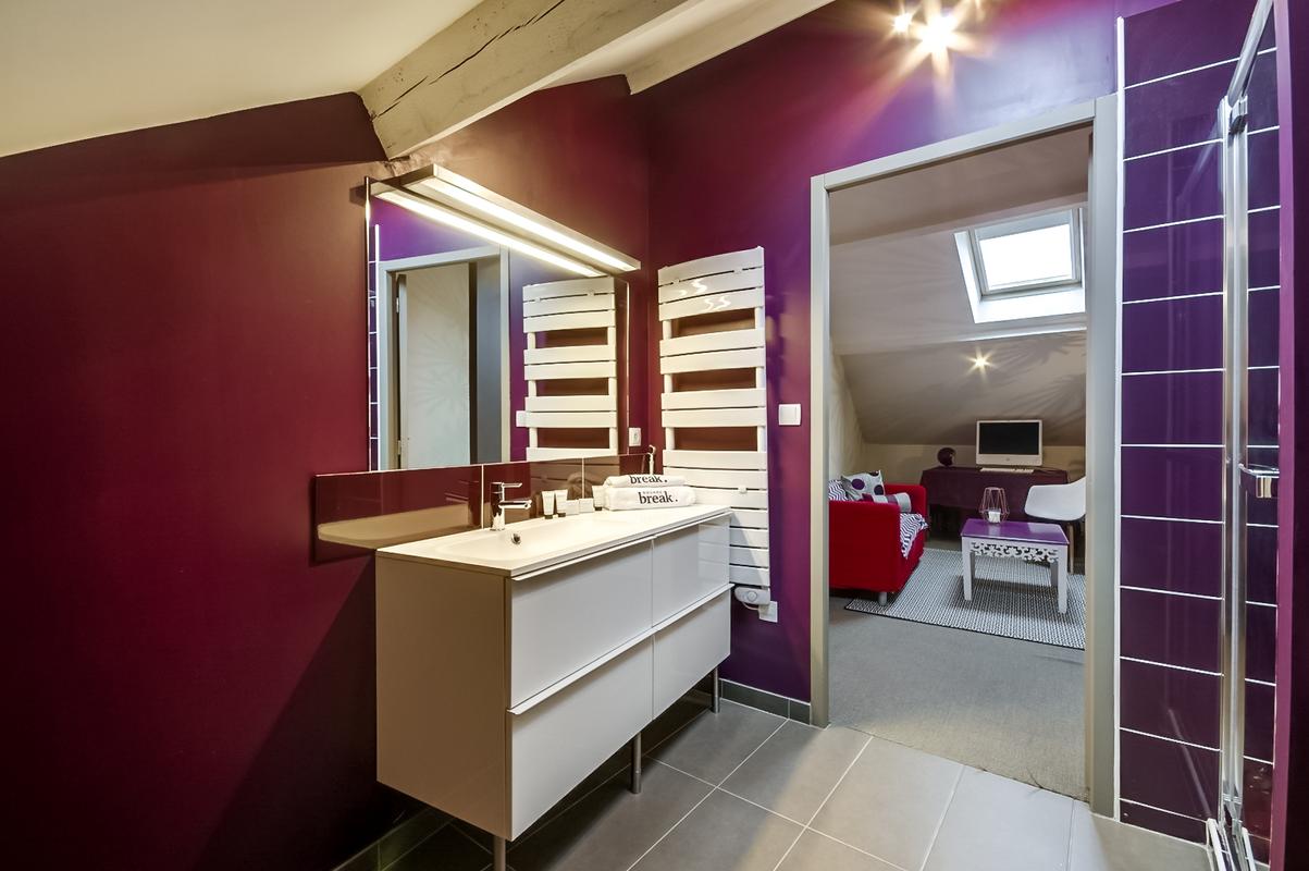 – Chambre 1 : lit king size, salle de bain avec baignoire et douche