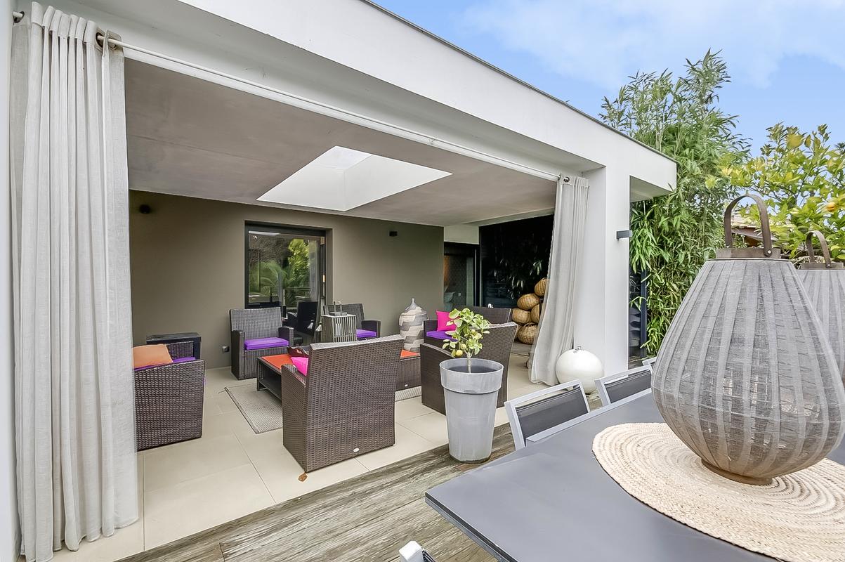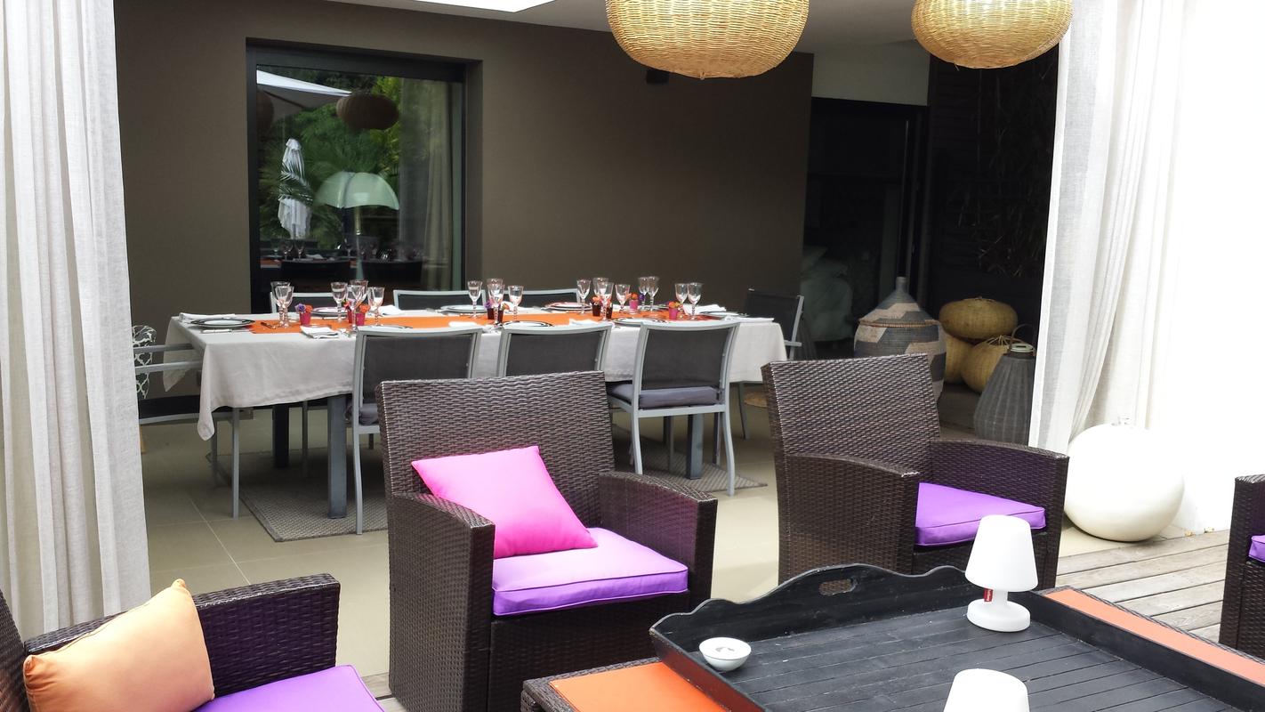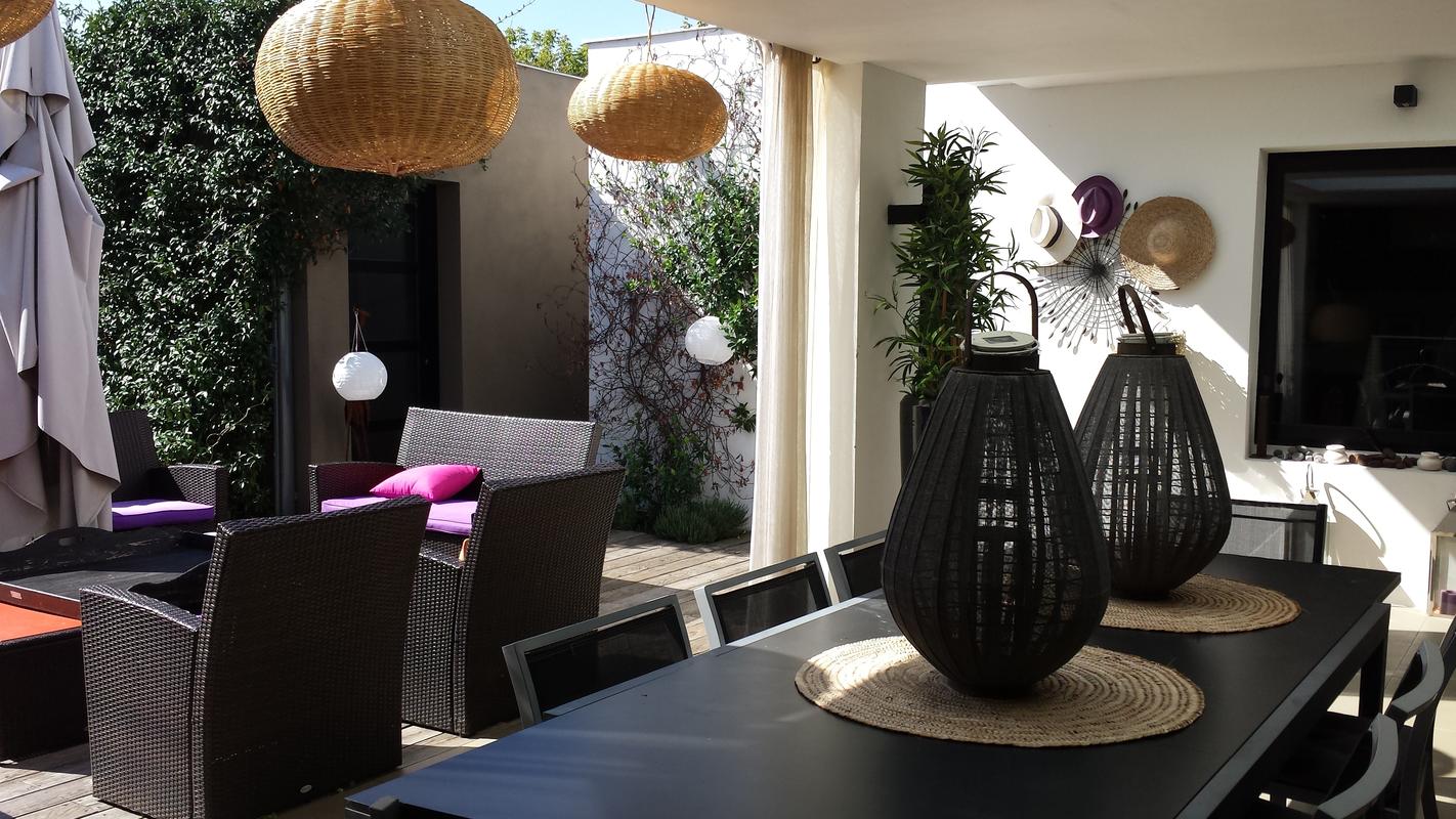 – Grande terrasse couverte avec salon d’été, protégée par des rideaux