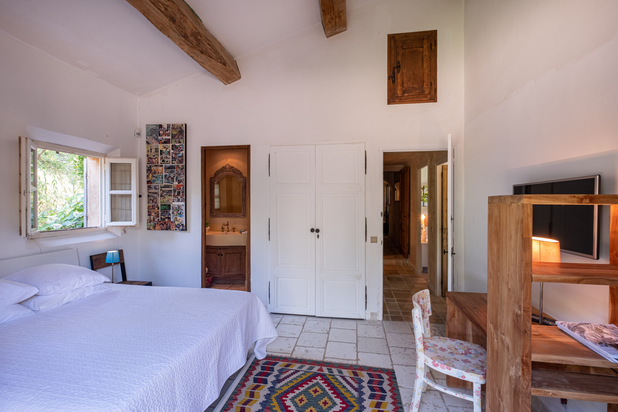 La Villa “Joli Mas” possède 6 chambres et 5 salle de bains. Chaque chambre offre un accès direct au jardin. Puis, toutes les chambres sont équipées de lits kings size avec possibilité se séparer les 2 lits.