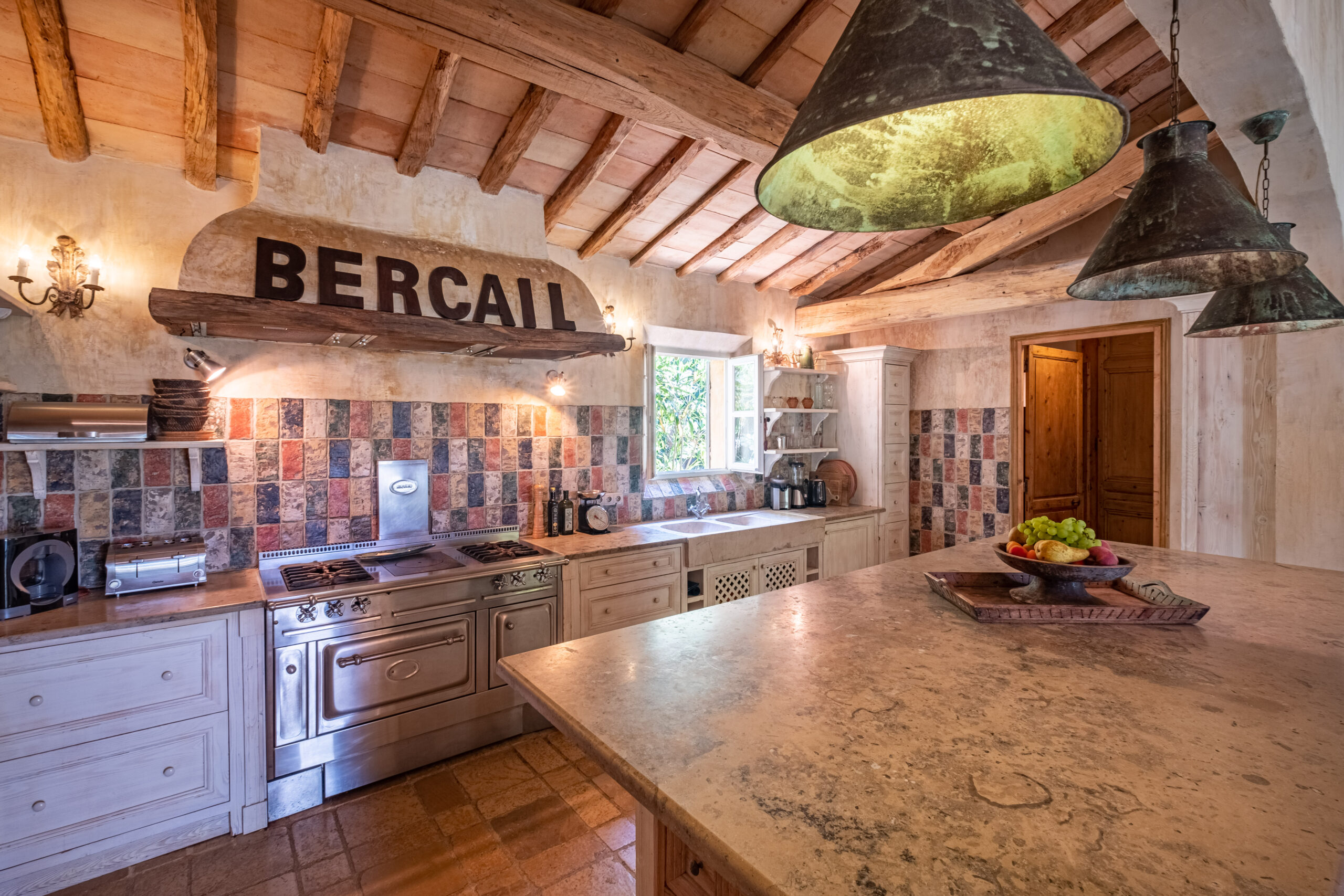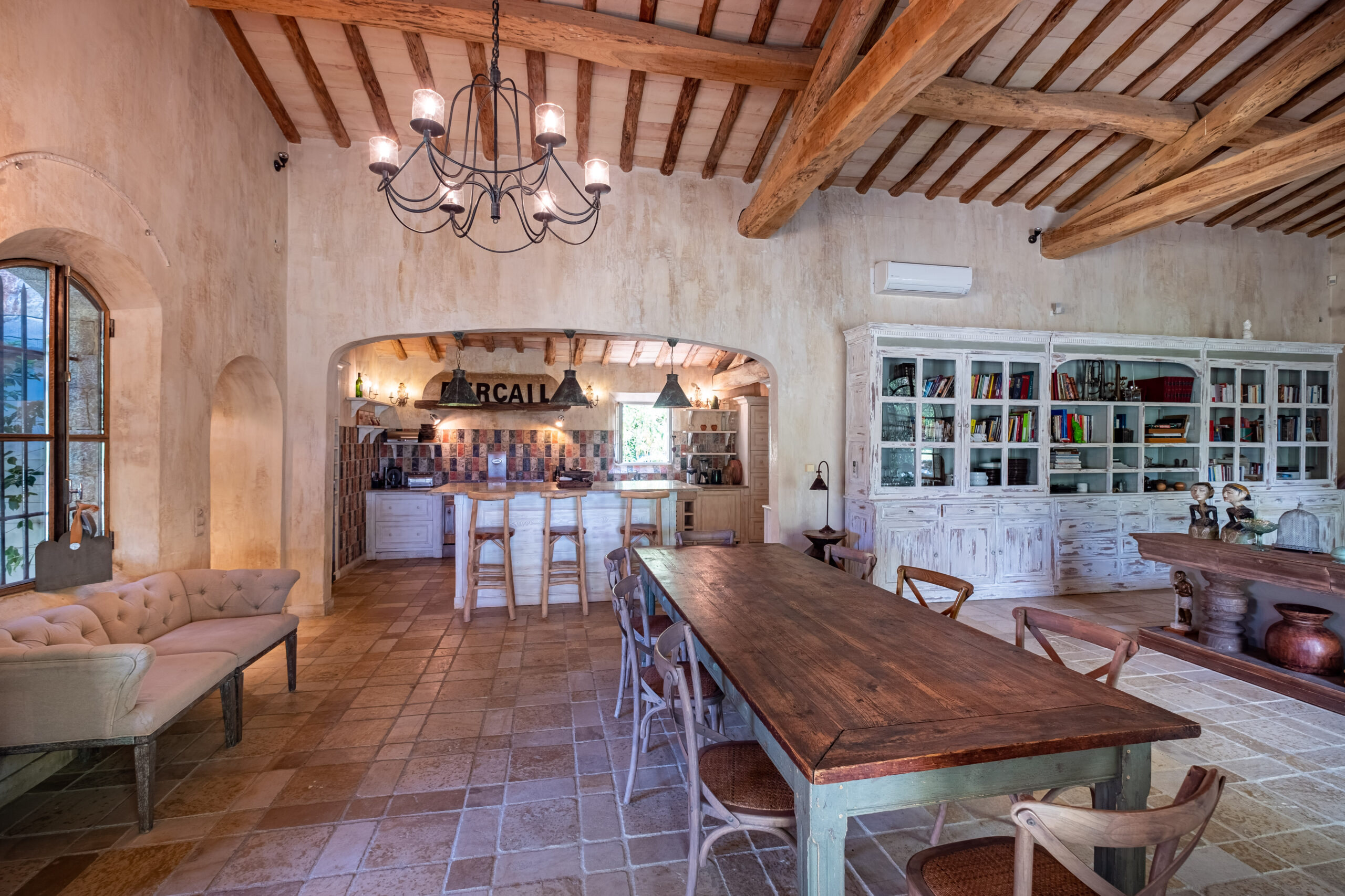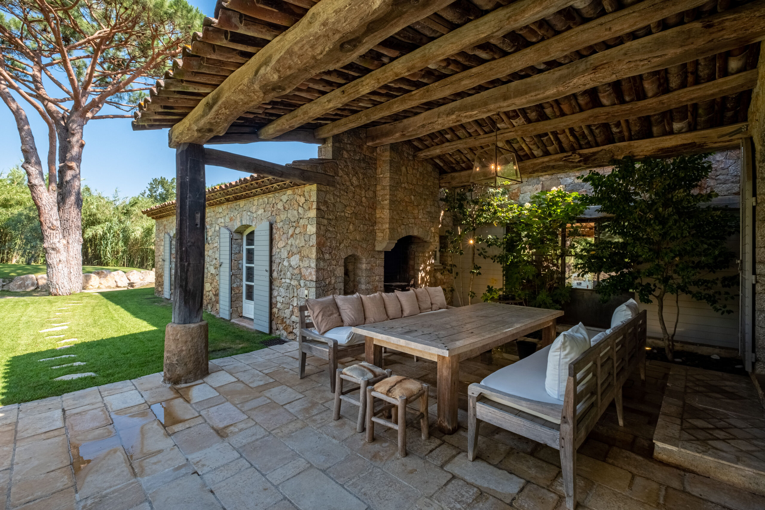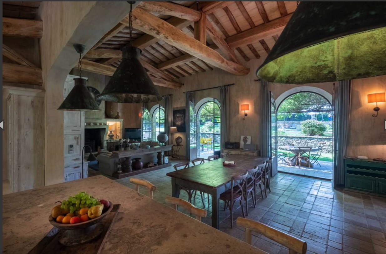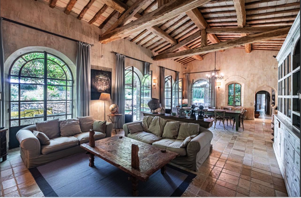 Une entrée extraordinaire où dès les premiers pas nous plongent directement dans l’ambiance luxe de cette villa à quelque minutes de Saint Tropez. Le salon, séjour est immense avec ses poutres au plafonds et sa cheminée pour le plaisir des invités. Un apéritif et de bons petits plats à préparer par votre chef dans cette cuisine conviviale ou chacun peux passer picorer. De hautes fenêtres vitrées donnent à l’espace de vie cette luminosité. Puis, on accède directement aux différentes terrasses et jardin devant la piscine.
