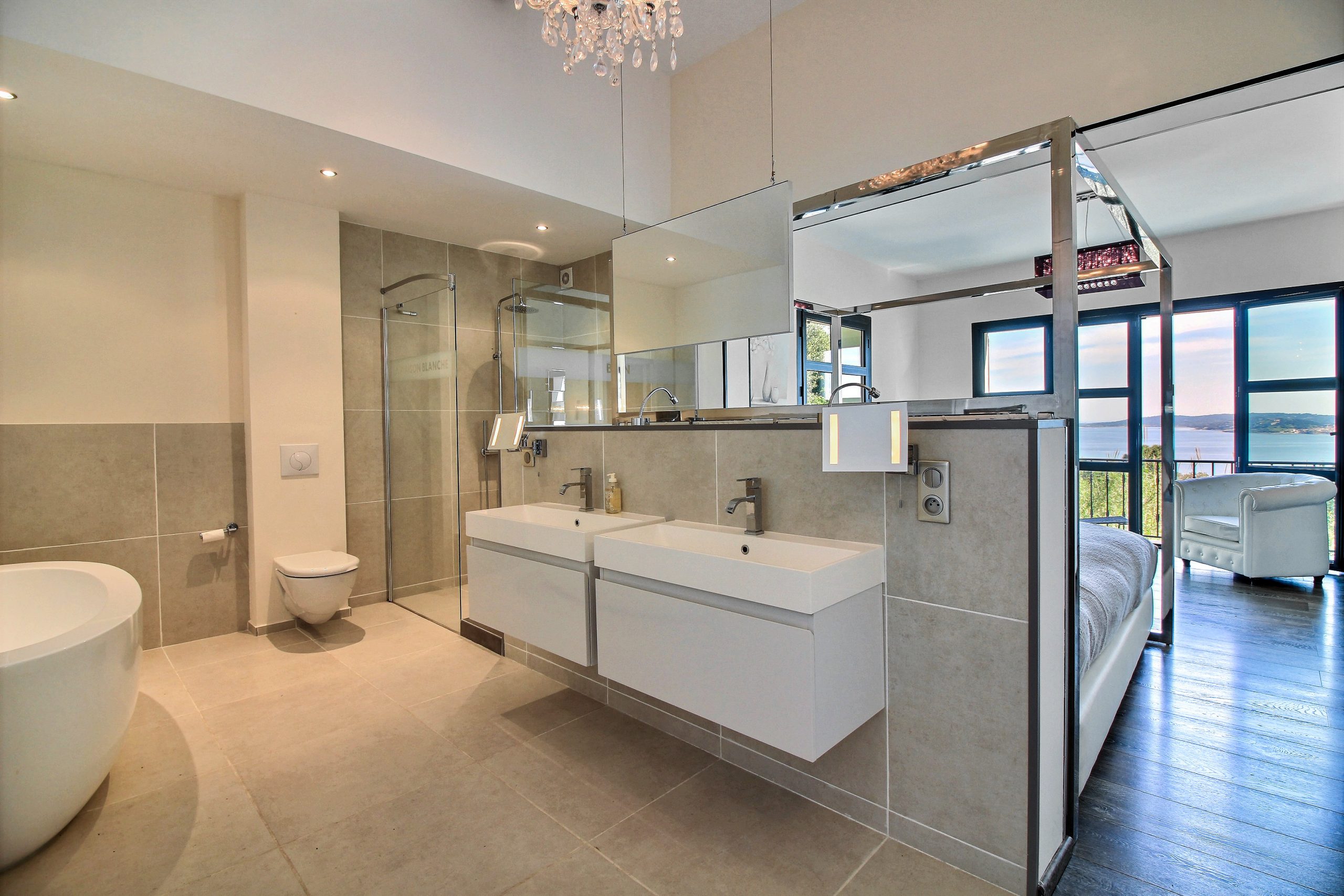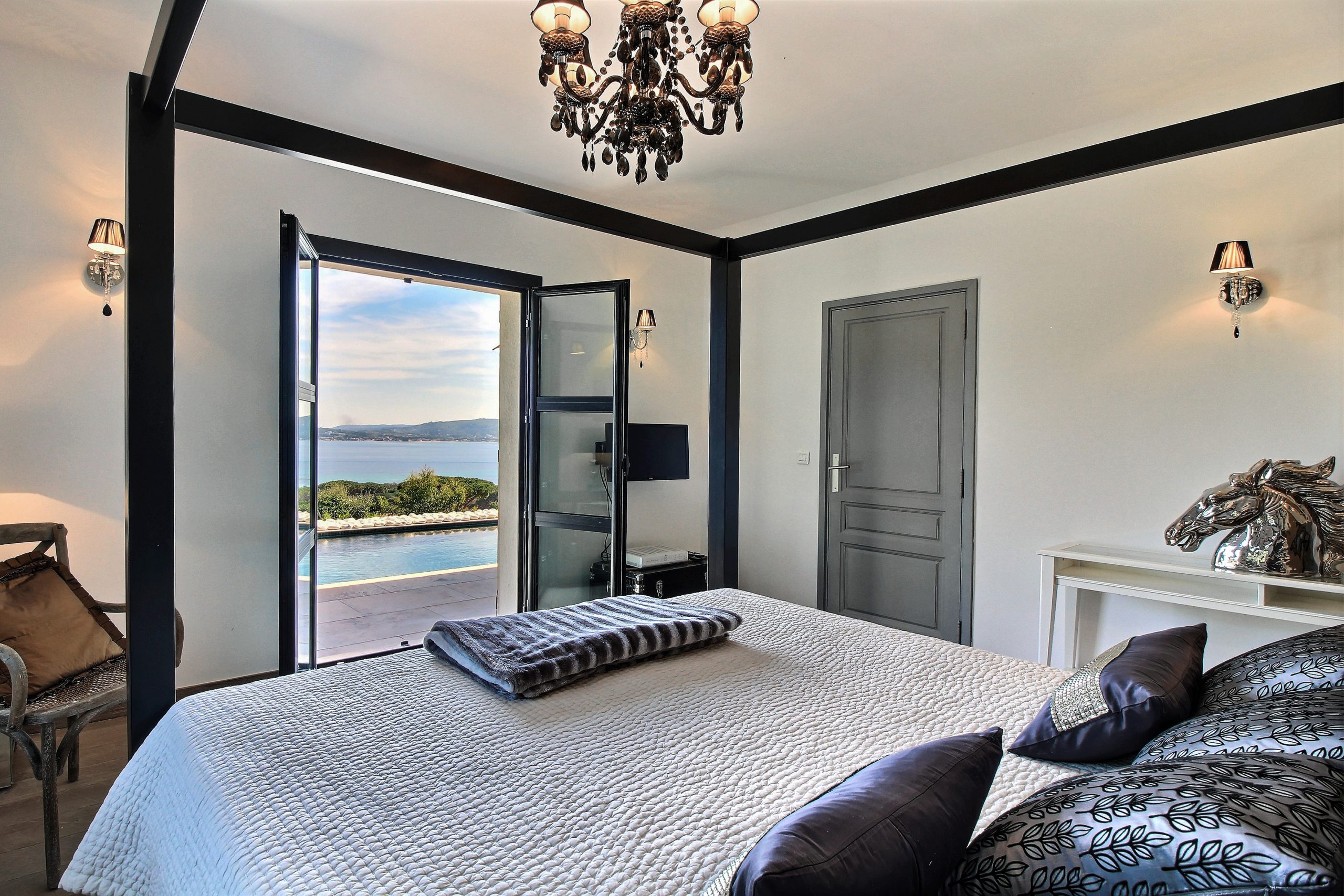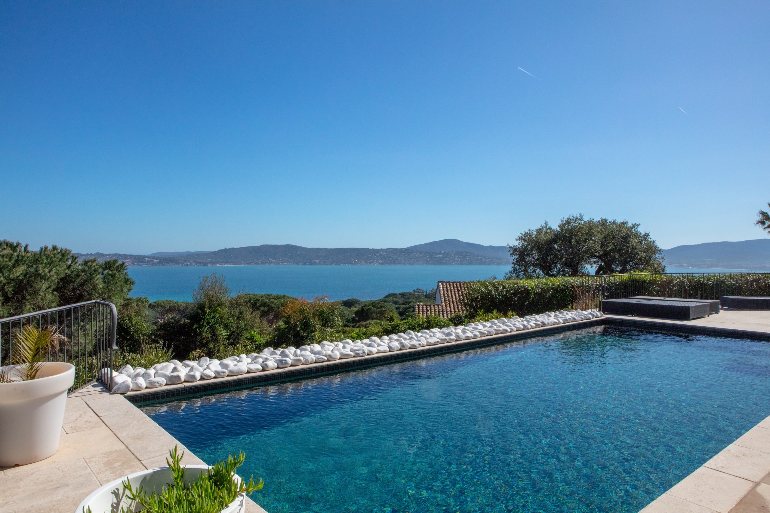 Situé dans un domaine privé très prisé, dominant tout le Golfe de Saint Tropez. Cette villa offre une vue panoramique exceptionnelle sur le village de la Côte D’Azur le plus connu au monde.