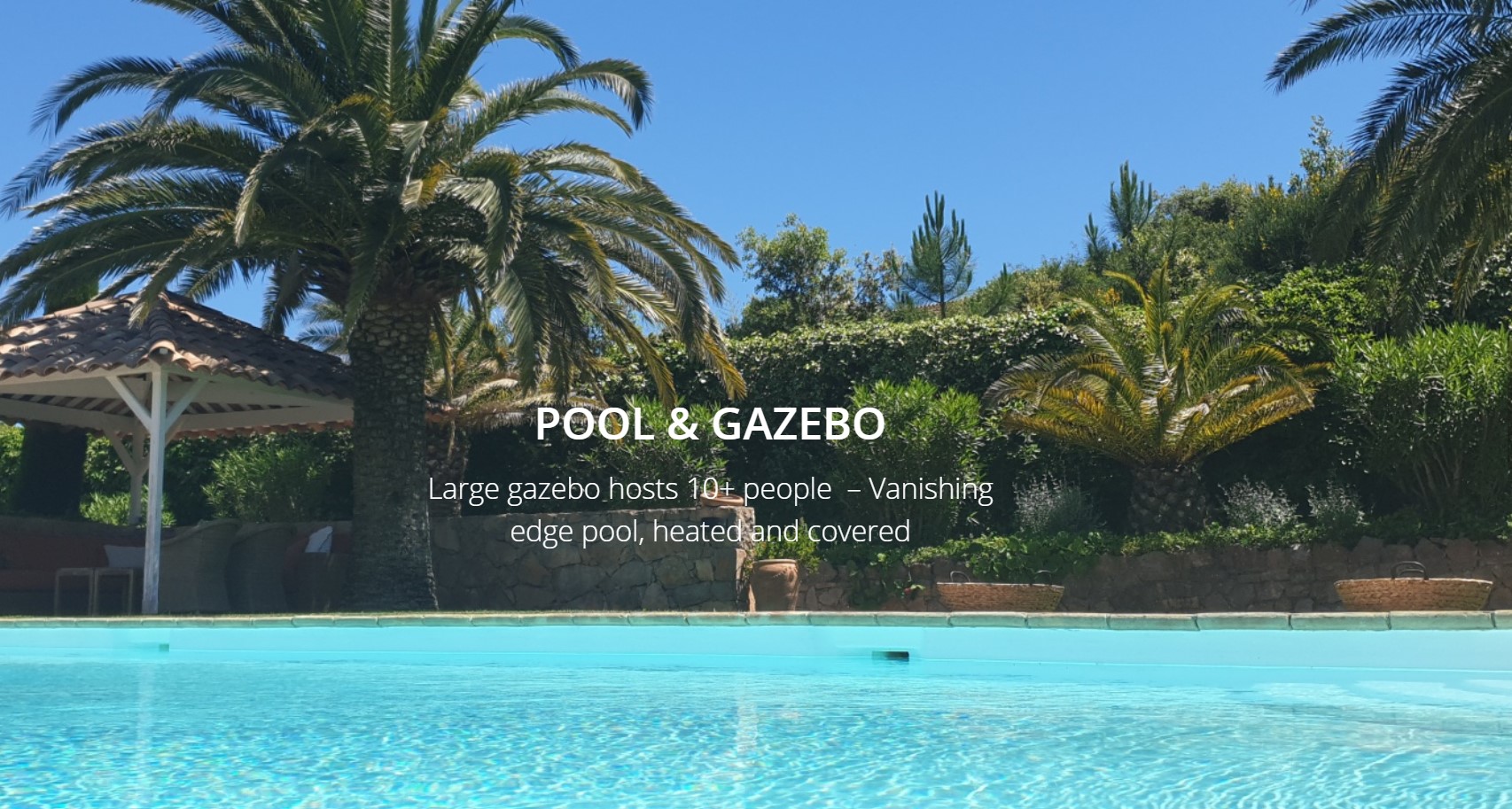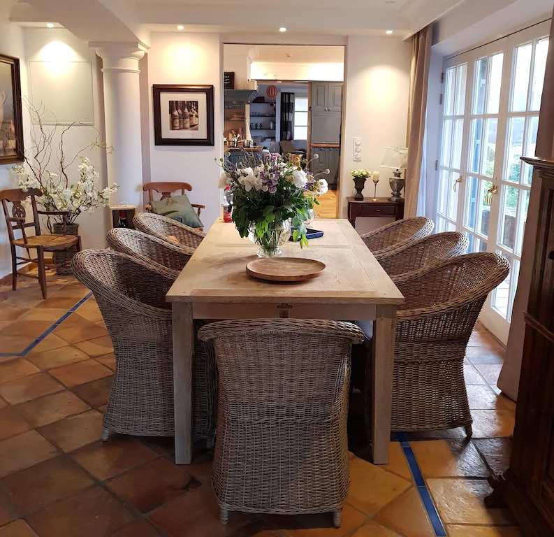 Une villa de 300 m² conçue pour 8 personnes avec lits supplémentaires, si besoin jusqu’à 12 personnes en transformant un bureau bibliothèque en chambre. La cuisine est équipée en professionnel avec 2 machines à café, grand frigo et tous les ustensiles nécessaires. Le salon, séjour très grand avec cheminée et de grandes baies vitrées.