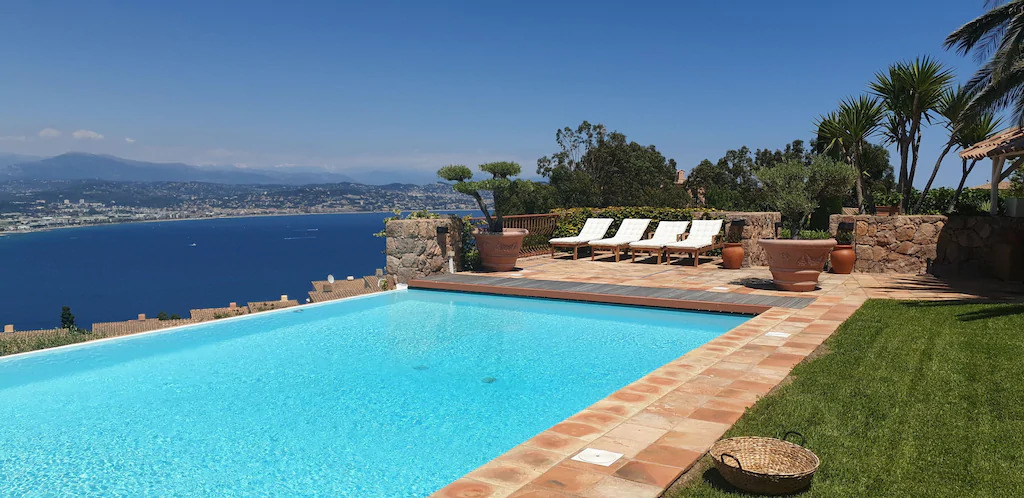 Une belle parcelle de 3000 m² avec une piscine à débordement et jet de nage à contre courant offre une vue panoramique sur la baie de Cannes. Un belvédère extérieur et une cuisine d’été pour des vacances à l’extérieur en toute liberté. Puis un Putting Green pour les amateurs de Golf. Enfin si vous voulez un endroit calme pour lire ou vous détendre, l’oliveraie offre des petits coins intimes qui fait que cette villa se démarque des autres sur la Côte D’Azur.