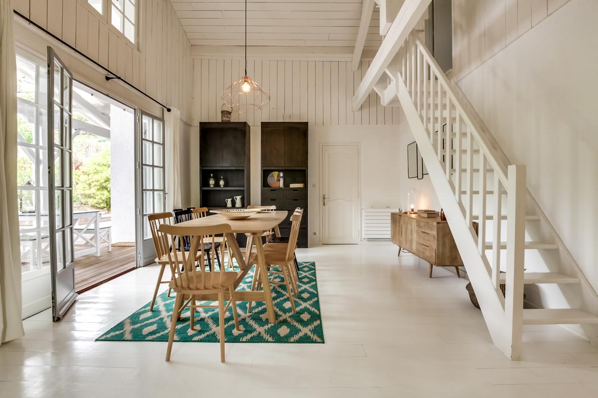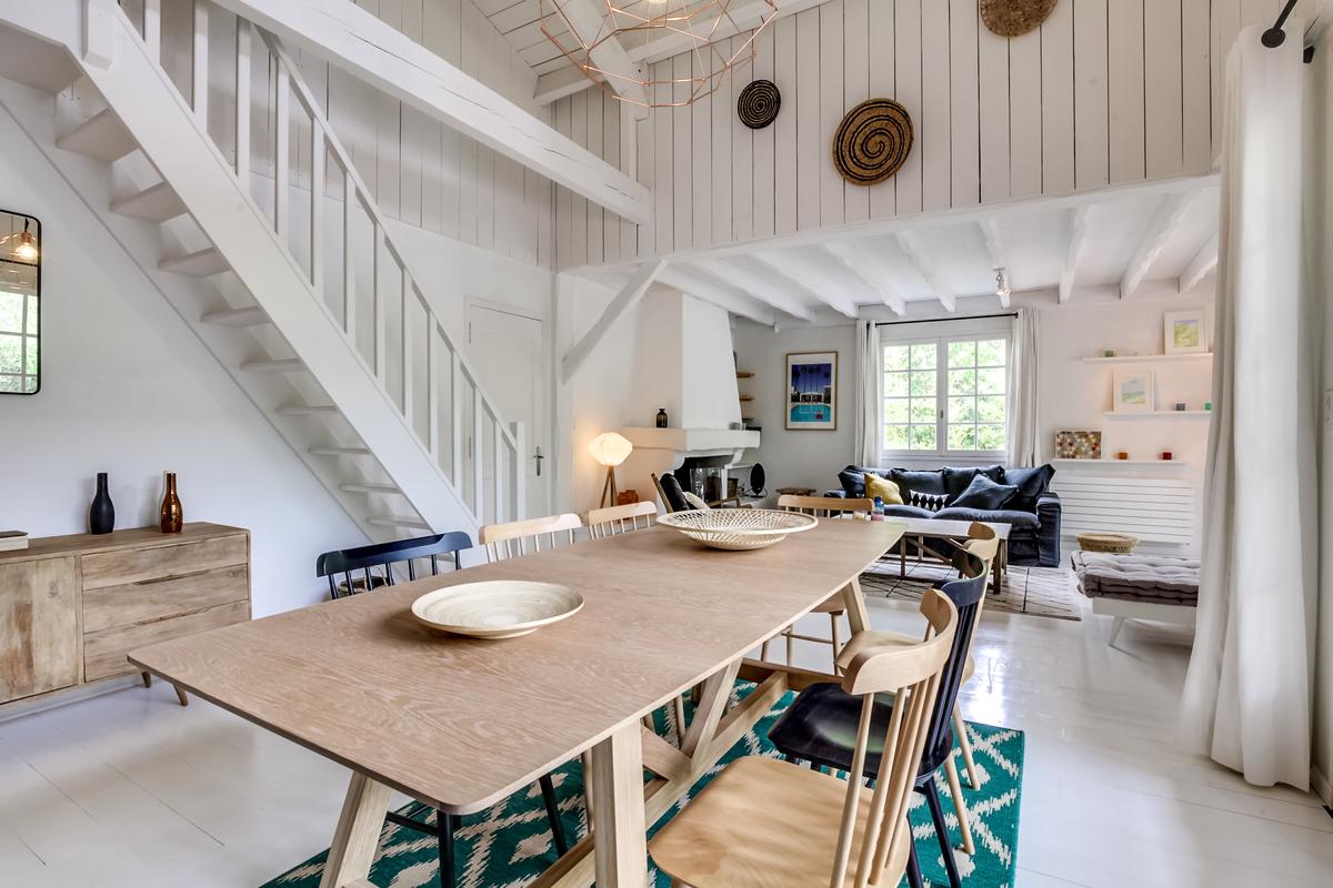 Le parfum des pins, le bruit des vagues, les cabanes de pêcheurs, les plages de sable, les longues promenades à vélo….. Le Cap Ferret est un lieu magique pour des vacances en famille. Cette belle villa blanche, située au sud du phare, à mi-chemin entre la baie et l’océan, est l’endroit idéal pour des vacances pour les grands clans.