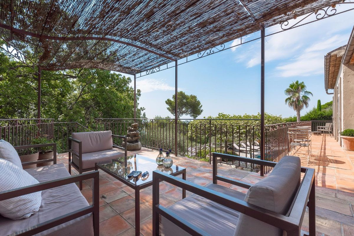 Au pied du village de Mougins, belle propriété avec vue sur la mer. Cette villa de 4 chambres, décorée et meublée avec gout. De grands espaces en extérieur pour accueillir les familles. La vue panoramique sur la mer et sur la baie de Cannes et Mandelieu est magnifique.
