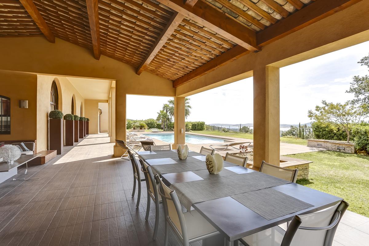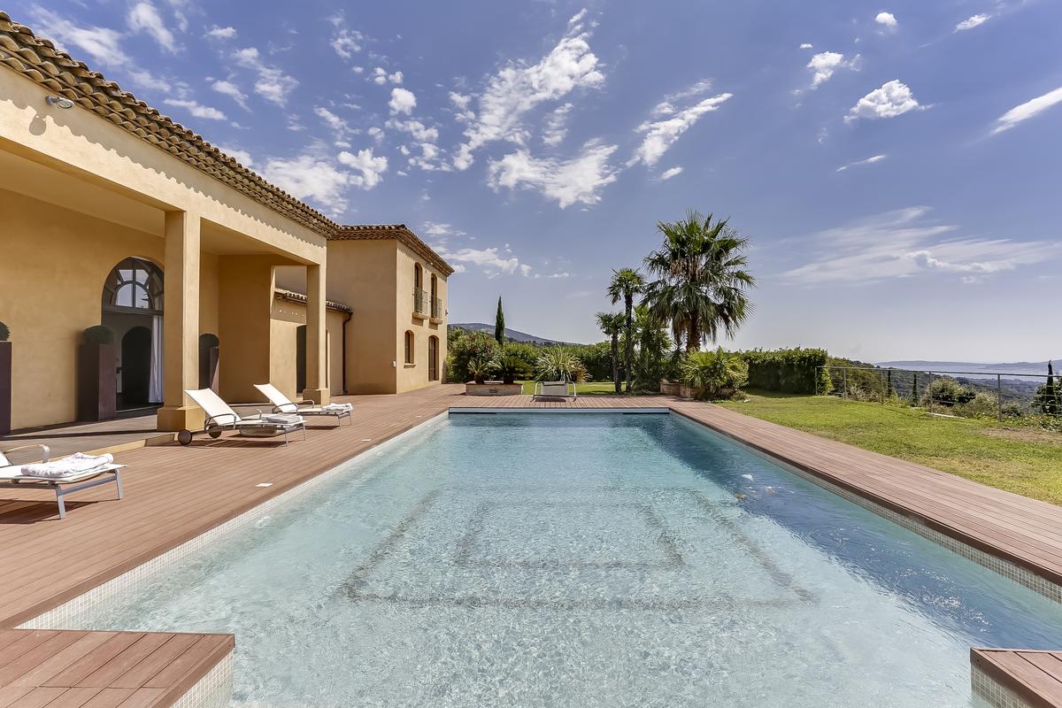 Les hauteurs de Grimaud dominent le golfe de Saint-Tropez, offrant une vue imprenable sur la côte méditerranéenne. Les villas de rêve sont nichées parmi les collines boisées et luxuriantes, toutes avec la même vue à couper le souffle. C’est l’une de ces villas que vous faites vôtre lors d’un séjour unique dans le calme et la beauté. Chaque détail et commodité respecte le luxe et l’unicité de cette villa : héliport, parc paysager de 5000m2 assurant une intimité totale, et piscine de 12x7m, face à la vue, juste au pied de la terrasse. Il y a beaucoup d’endroits pour se détendre, y compris un patio lounge de style marocain où vous pouvez prendre un verre et bavarder tard dans la nuit, dans les lumières de la baie.