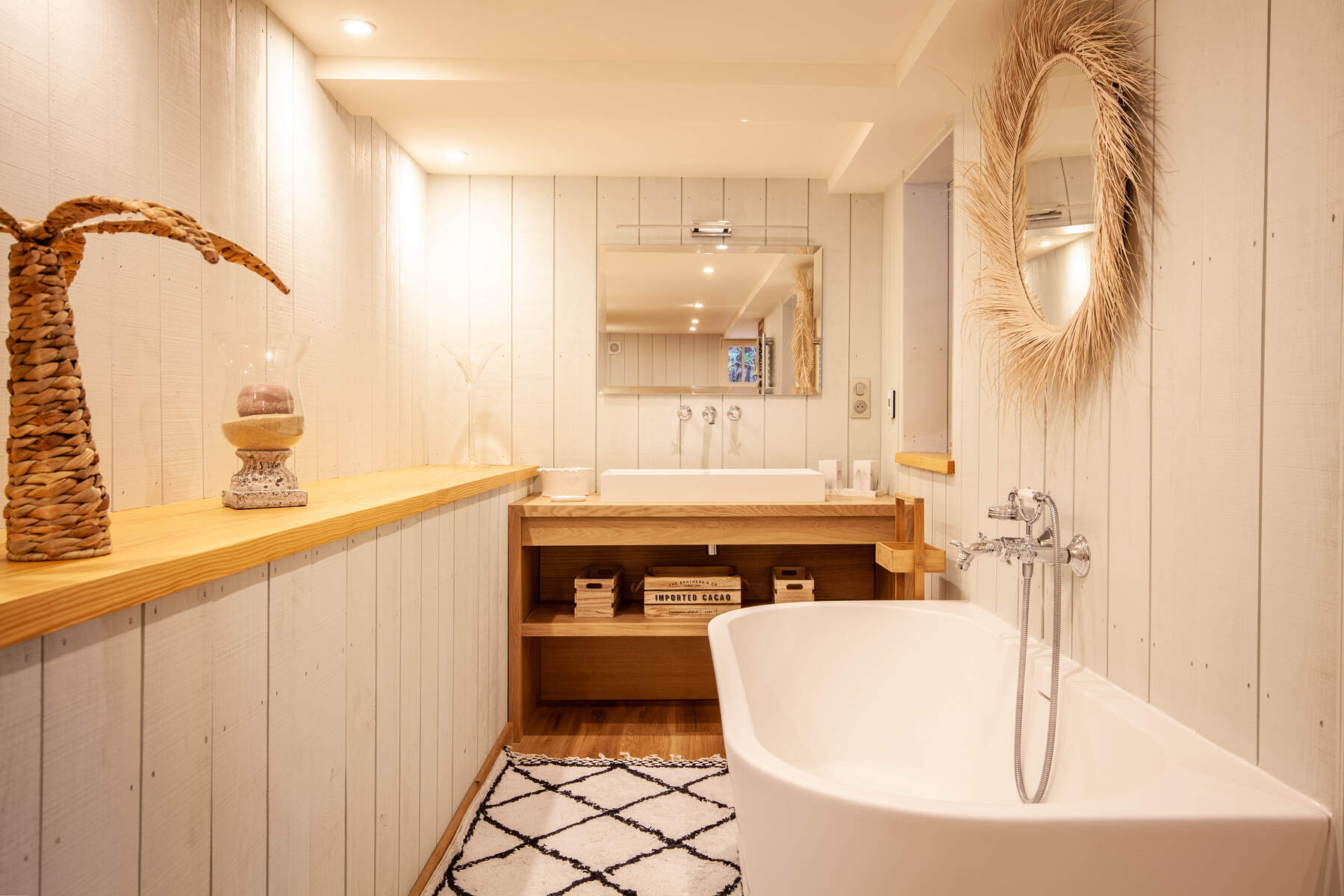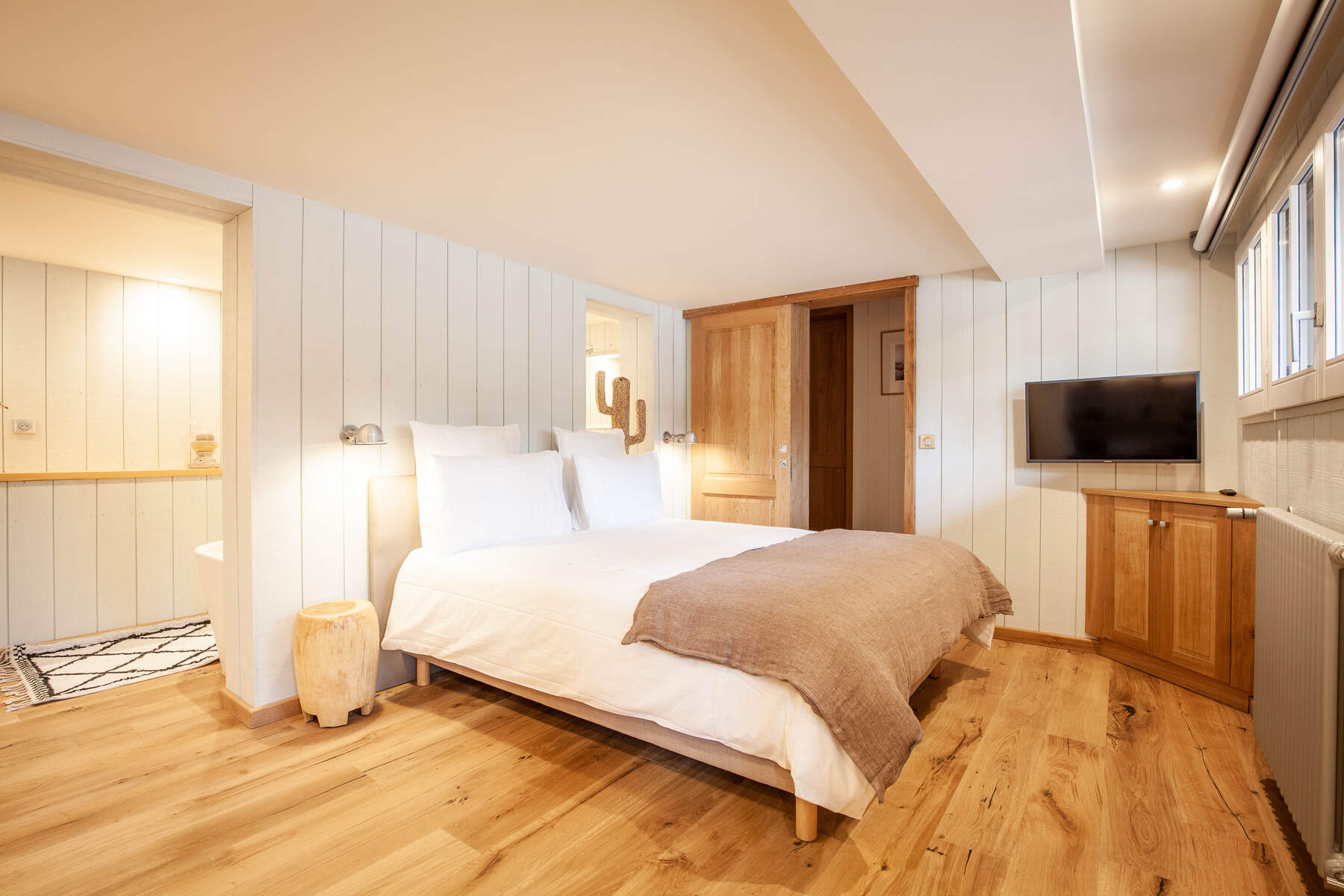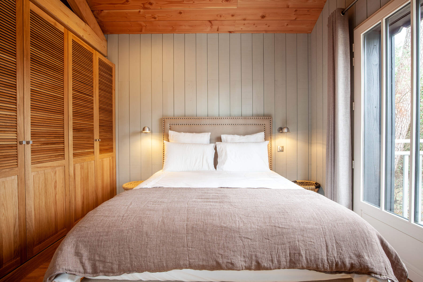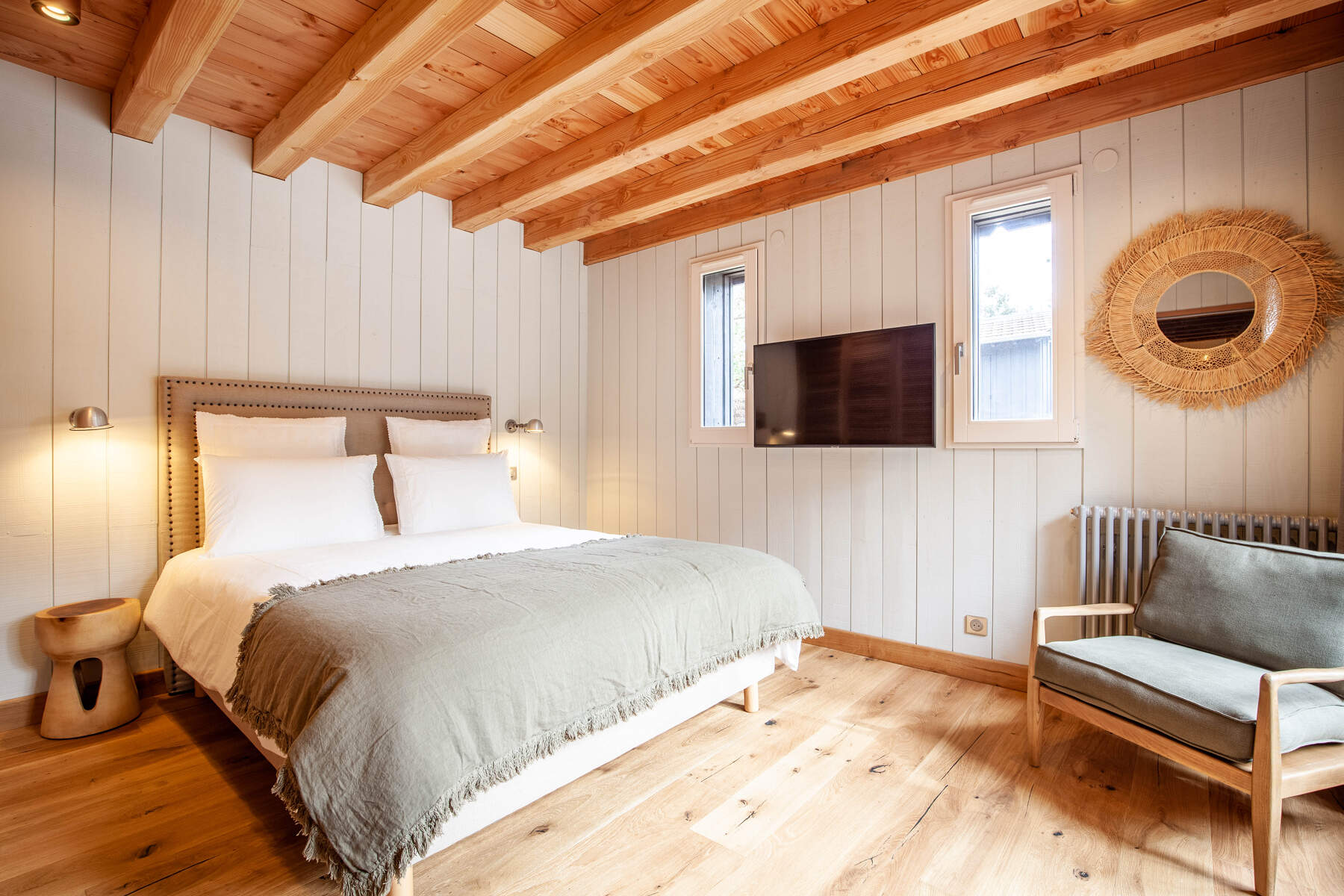 En fait, nous sommes imprégné dans l’esprit total des cabanes au bord de mer, à 250 m de la Plage. Un beau jardin arboré et des terrasses en bois pour que chacun se prélasse. Les vacances de rêve commencent par le petits déjeuner sur la grande terrasse qui surplombe le jardin, puis un plongeon dans la piscine chauffée.