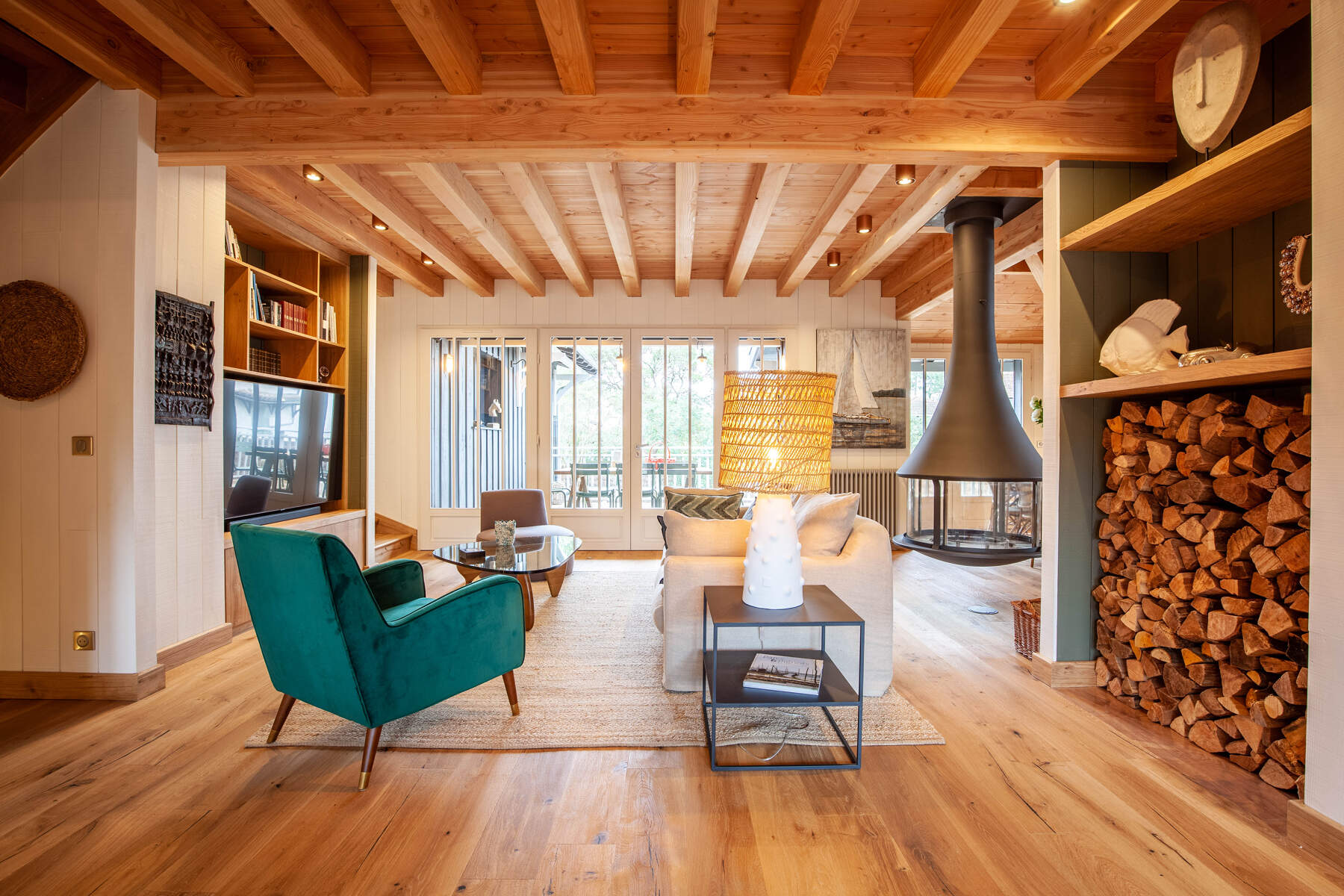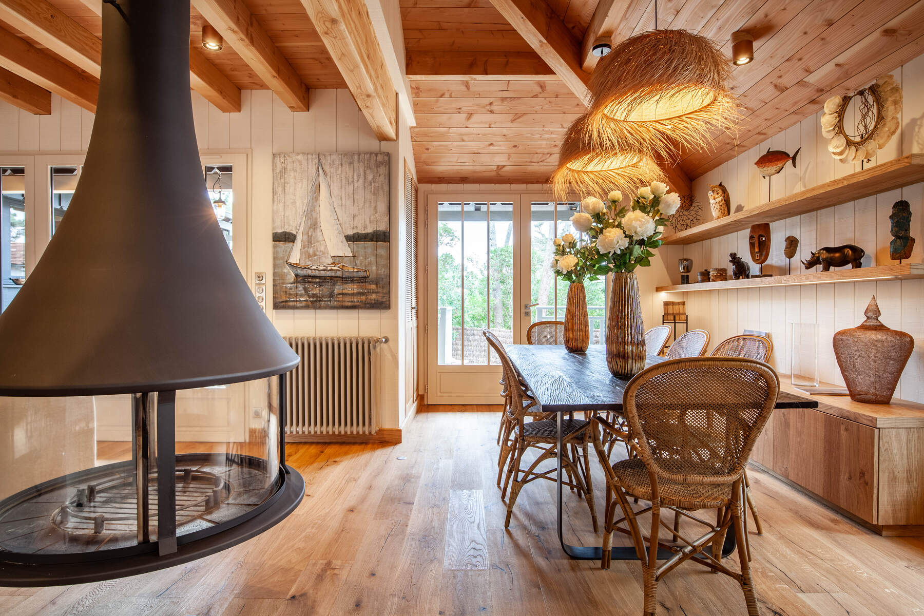 Location de votre villa de vacances en plein centre du village de Lege Cap Ferret pour 12 personnes. En effet, cette villa est prestigieuse avec sa structure en bois et son style cottage Anglais.