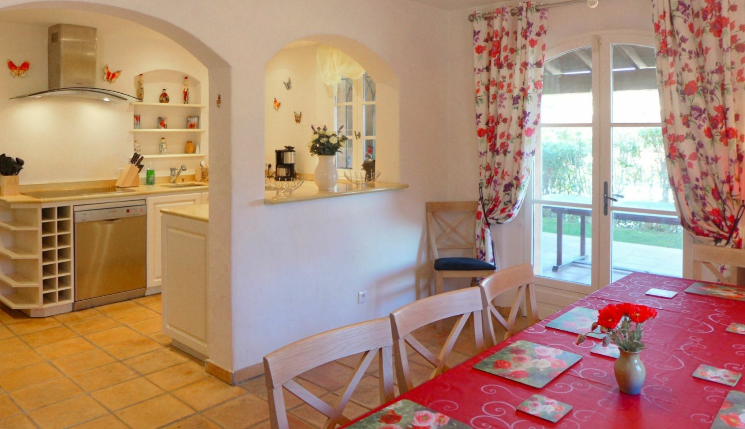 La villa Le Bastidon est superbe avec une décoration sobre et de bon gout. Une villa de 191 m² sur 2 niveaux aménagée confortablement. En effet, un grand séjour avec cheminée et écran plat, donne directement sur la terrasse. Puis, la cuisine ouverte à l’américaine est très bien équipée pour passer un séjour agréable. De plus, une chambre double de plain pieds avec douche, WC et accès direct terrasse.