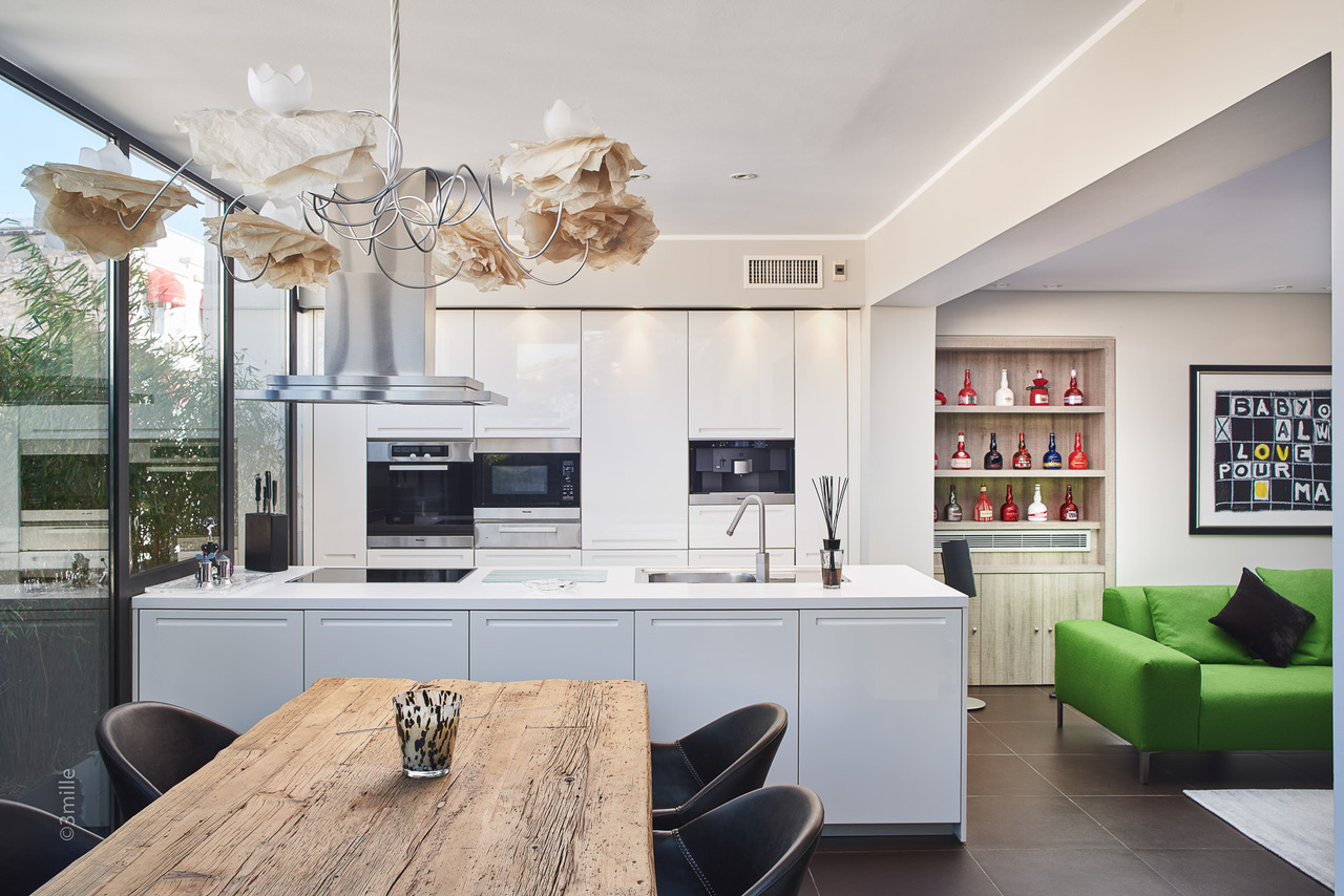 Une superbe salon, séjour, avec cuisine ouverte entièrement équipée avec de l’électroménager de prestige et donnant sur la terrasse de 25 m². Une chambre de Maître salle de bain en suite. deux autres chambres avec douche complète la partie nuit. Un bureau pour vous permettre de veiller à vos affaires.