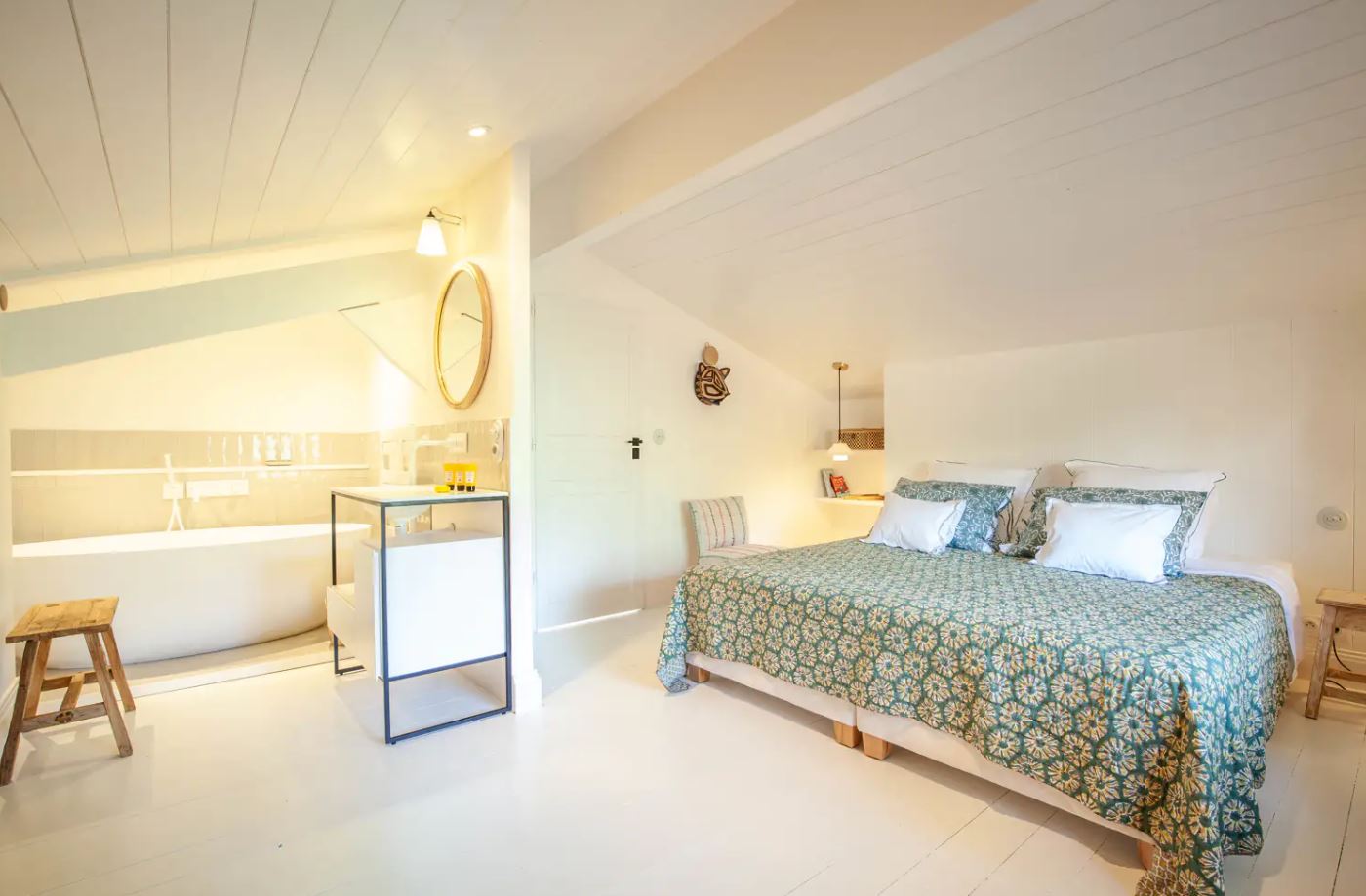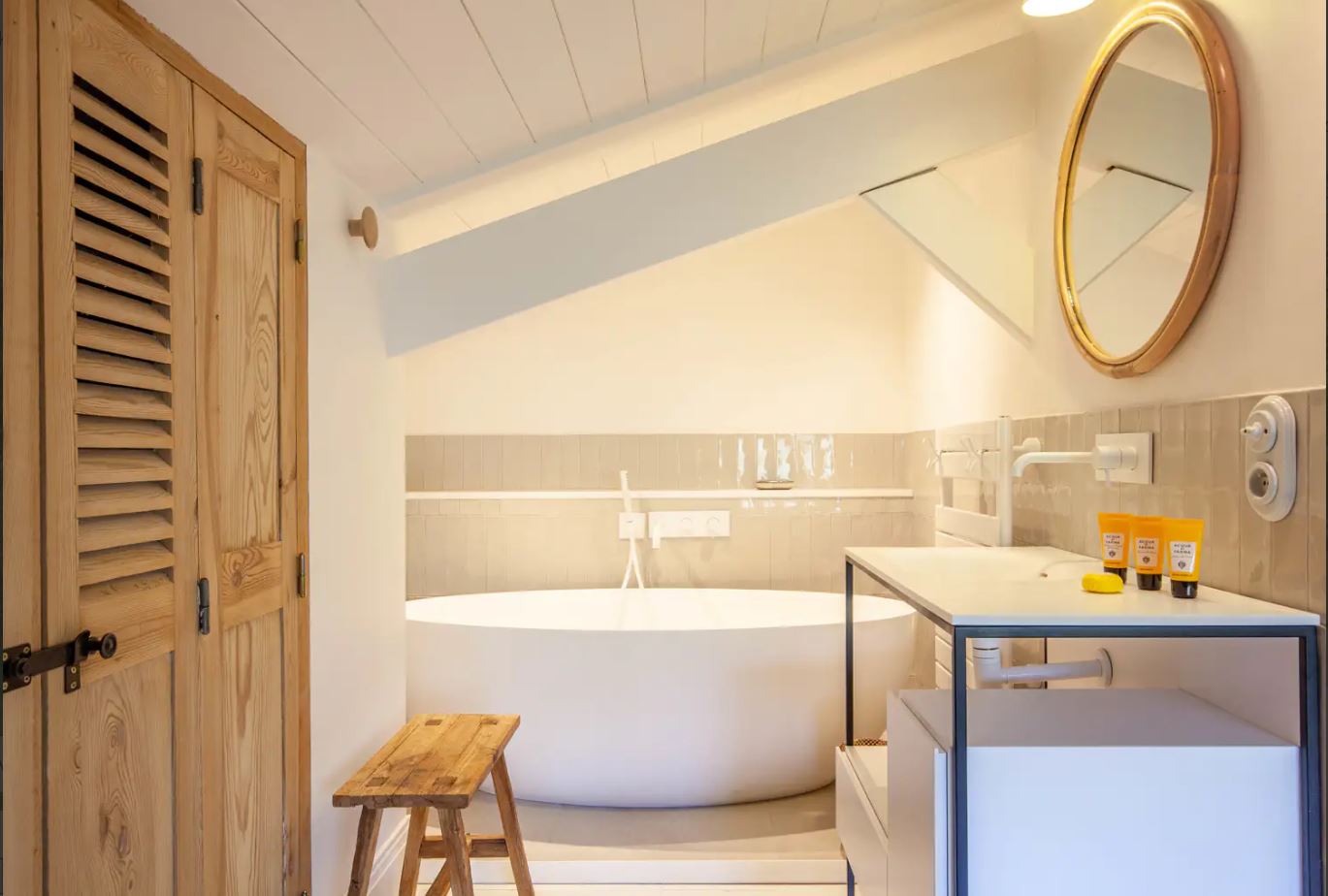 La villa qui sent bon les histoires de famille, comme un retour en enfance, avec des souvenirs des vacances insouciantes. En fait, en pleine nature comme dans un cocon avec des matériaux nobles et des couleurs douces. De plus, au calme devant la piscine pour lire un bon roman, puis se préparer pour le dîner, en ville. En effet, cette villa est divisée en 2 villas attenantes pour l’intimité de chacun.