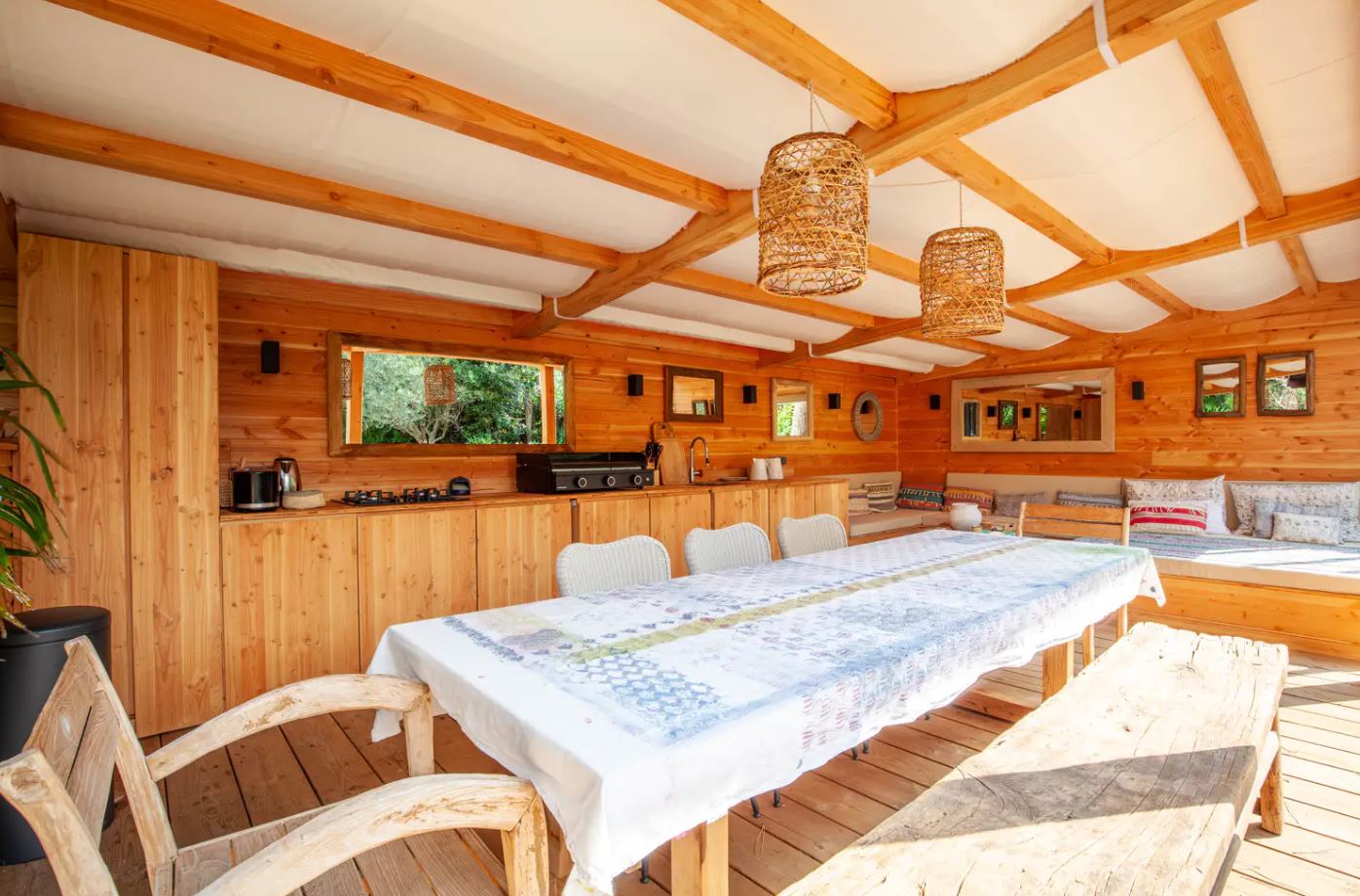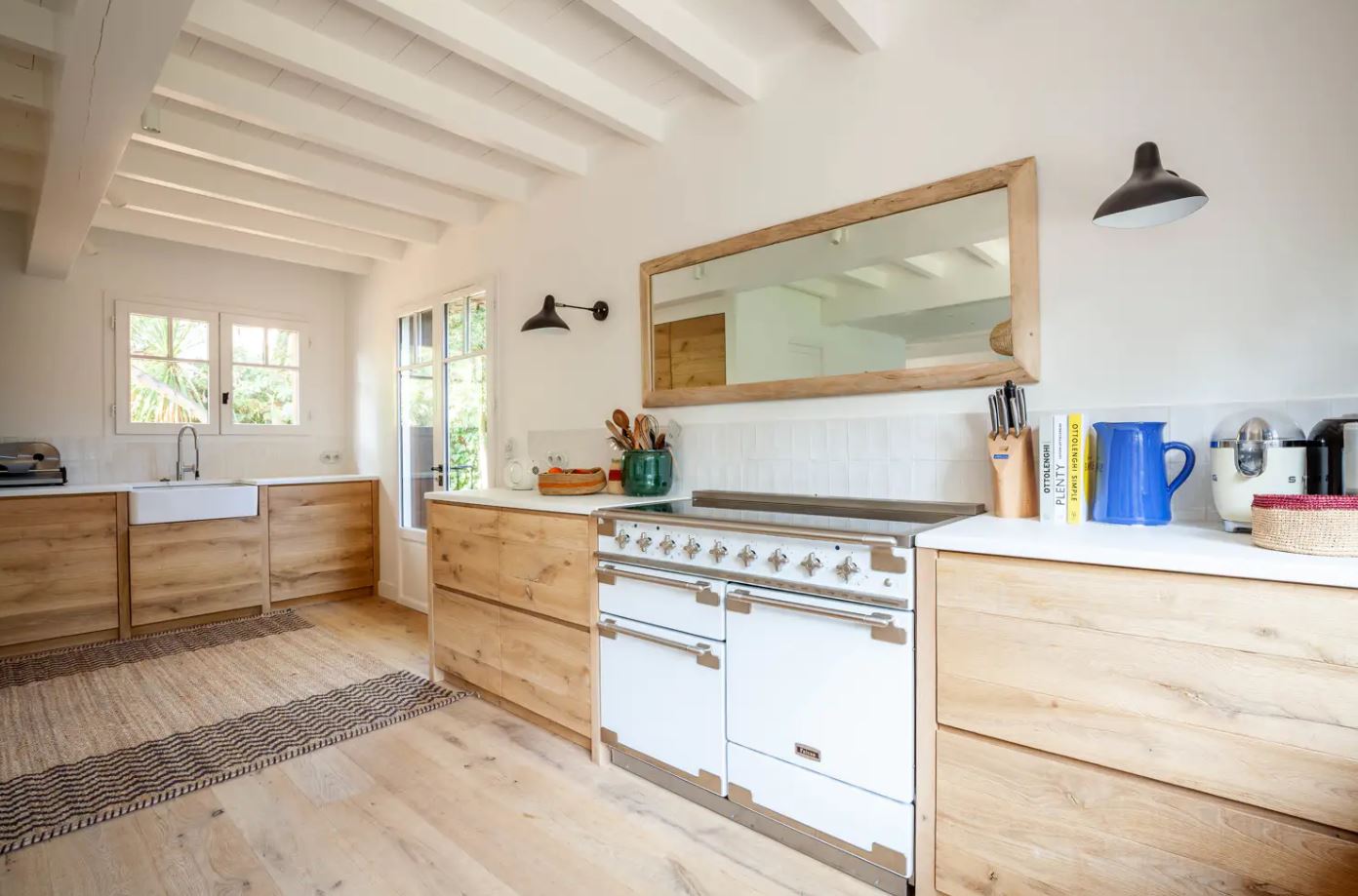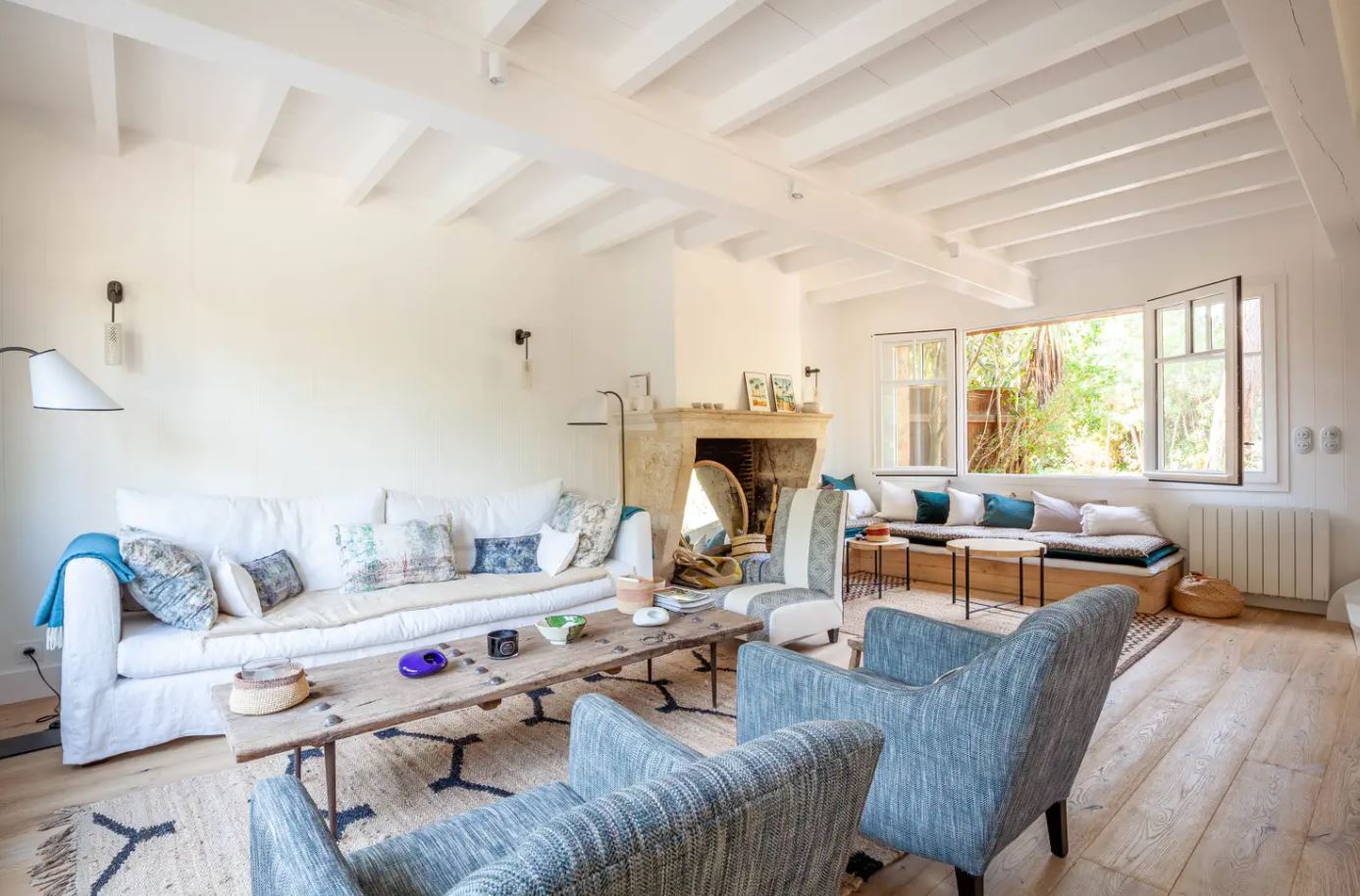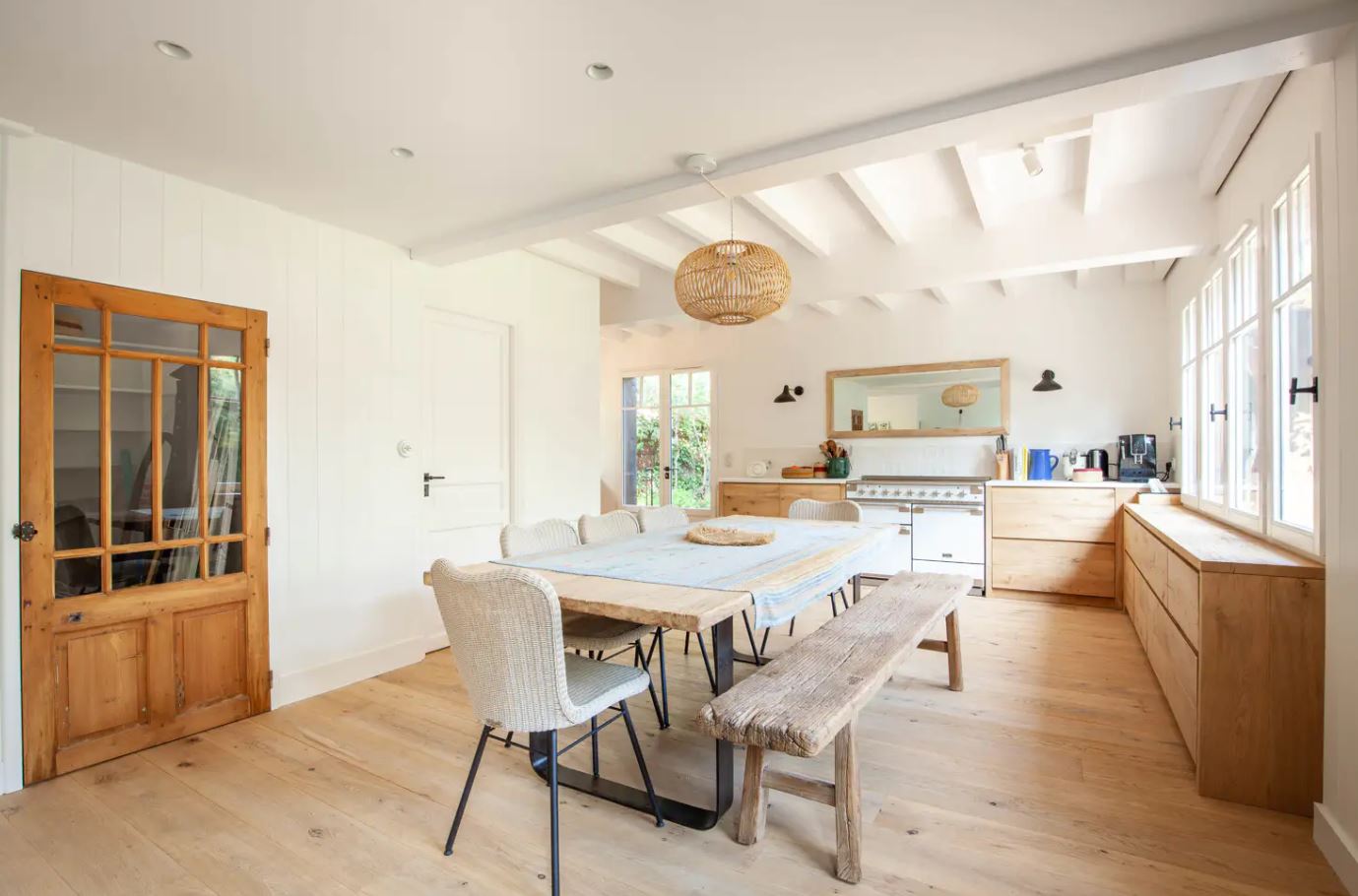 Des pièces de vie très spacieuses, un salon séjour avec cheminée. Puis, un belle cuisine entièrement équipée, ouverte sur la salle à manger. La table est parfaite pour les 10 convives.