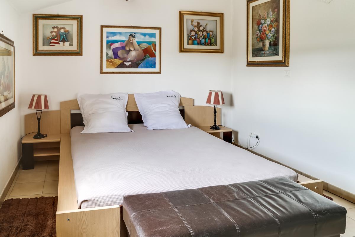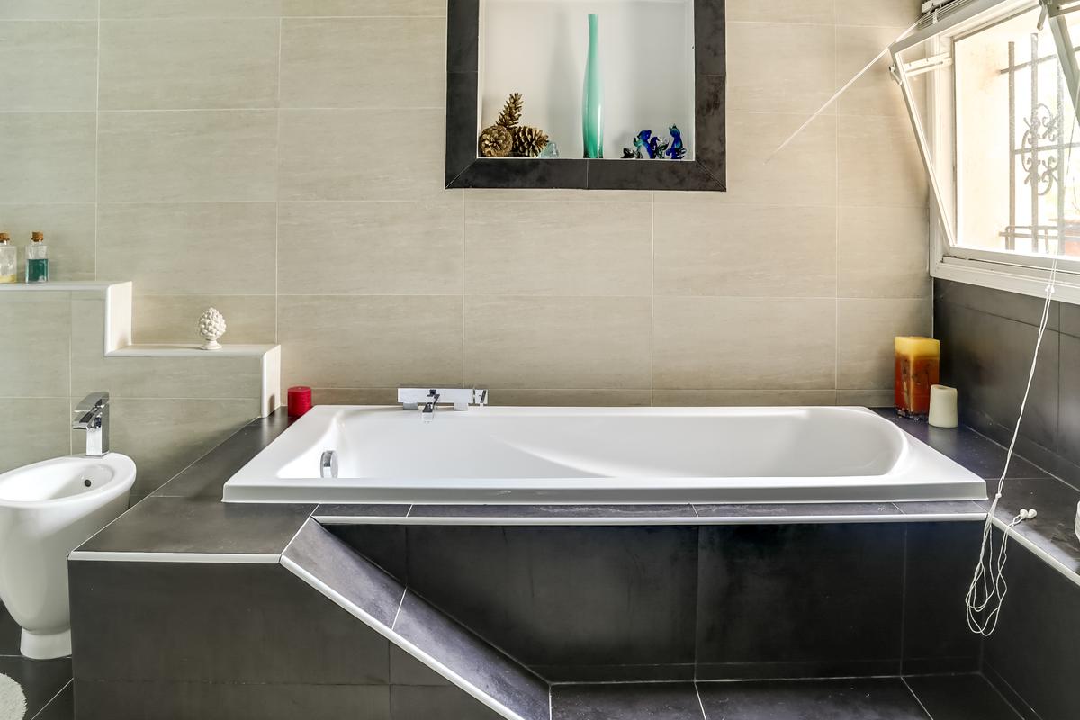– Chambre 1 : suite parentale au rez-de-jardin, lit queen, salle de bain avec baignoire et toilettes