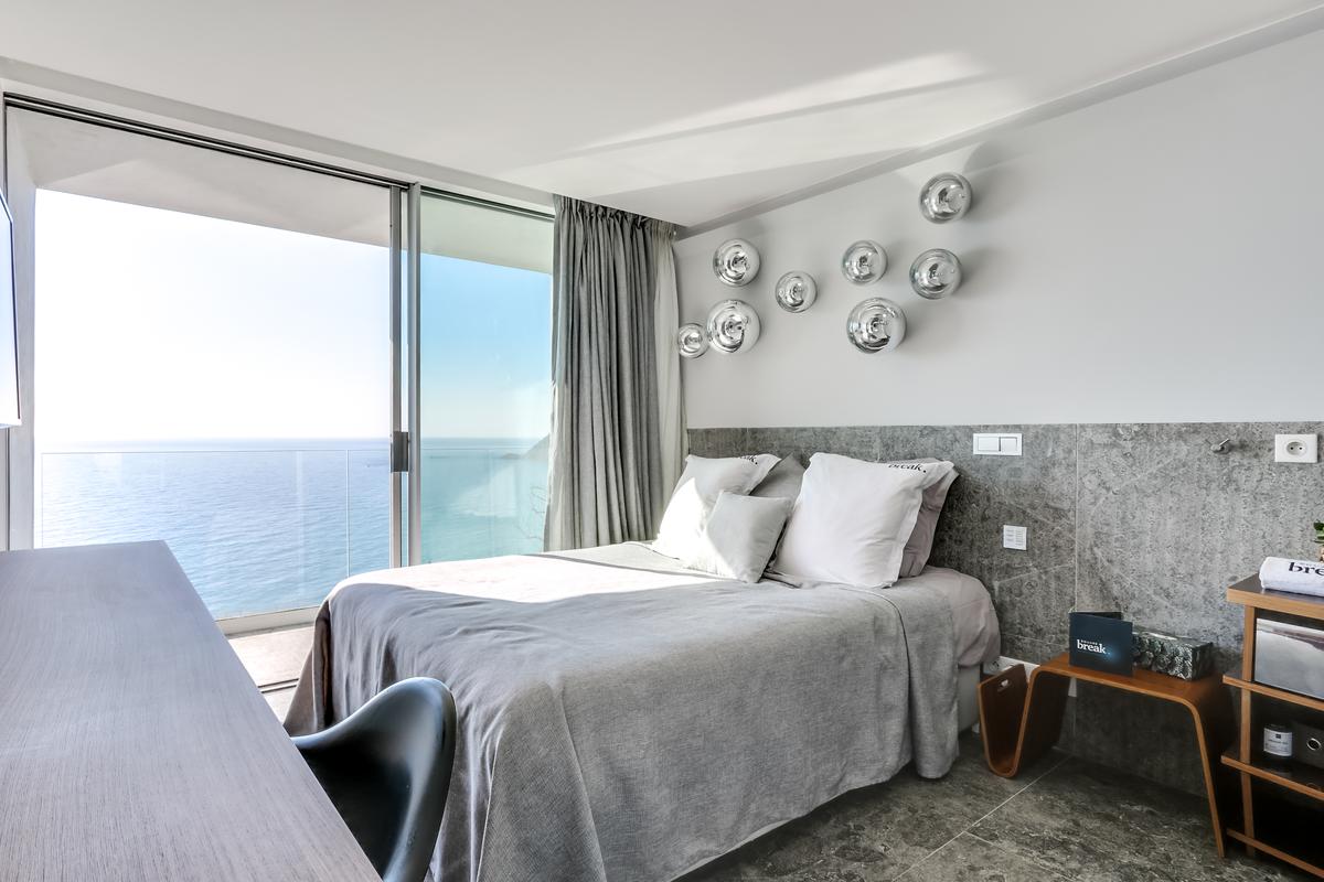 – Chambre 1 : grand lit queen, salle de douche attenante – douche, vue mer