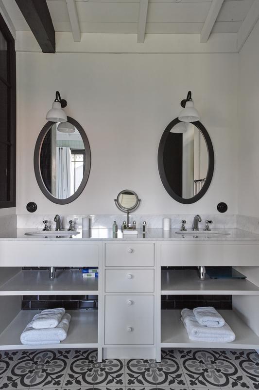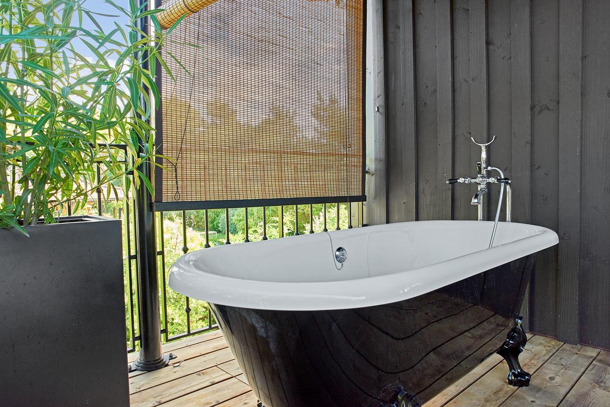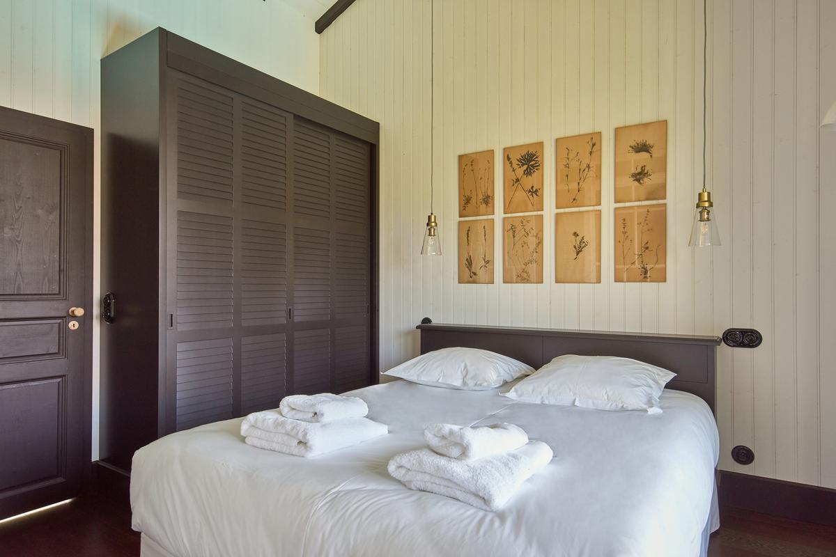● Chambre 1 : 1 grand lit, balcon, salle de bains attenante – baignoire, douche, WC