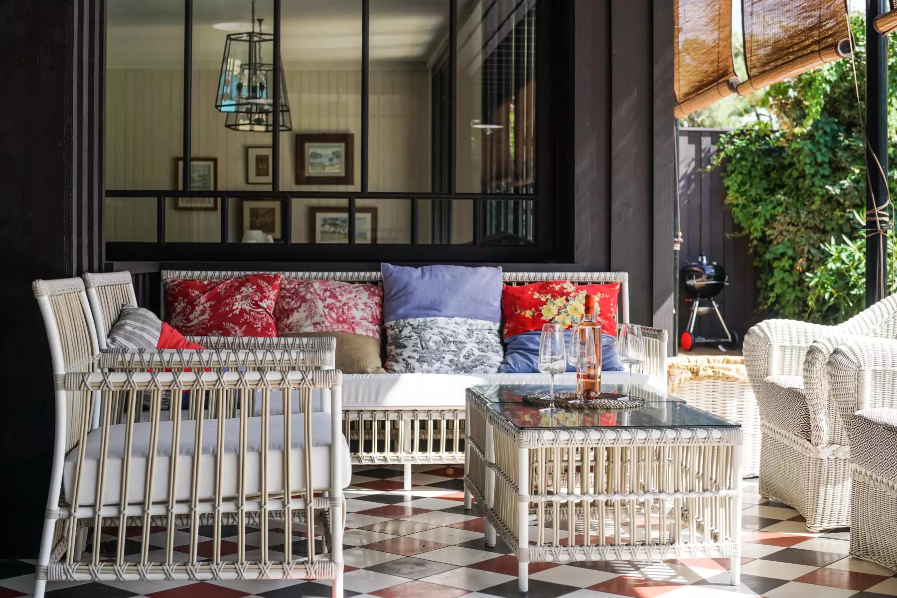 Garage privé à l’intérieur de la propriété. Barbecue à gaz et plancha disponibles dans le jardin.