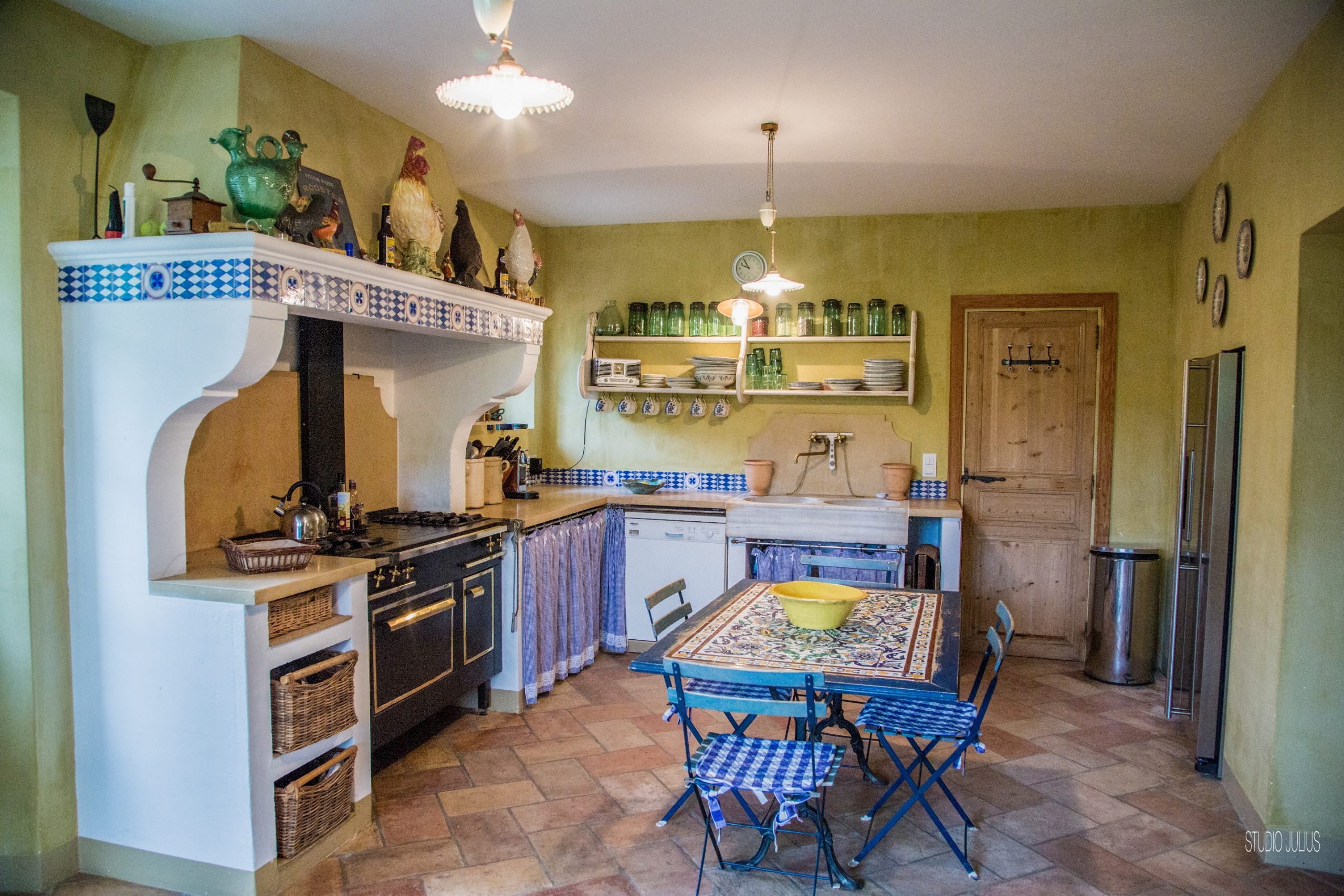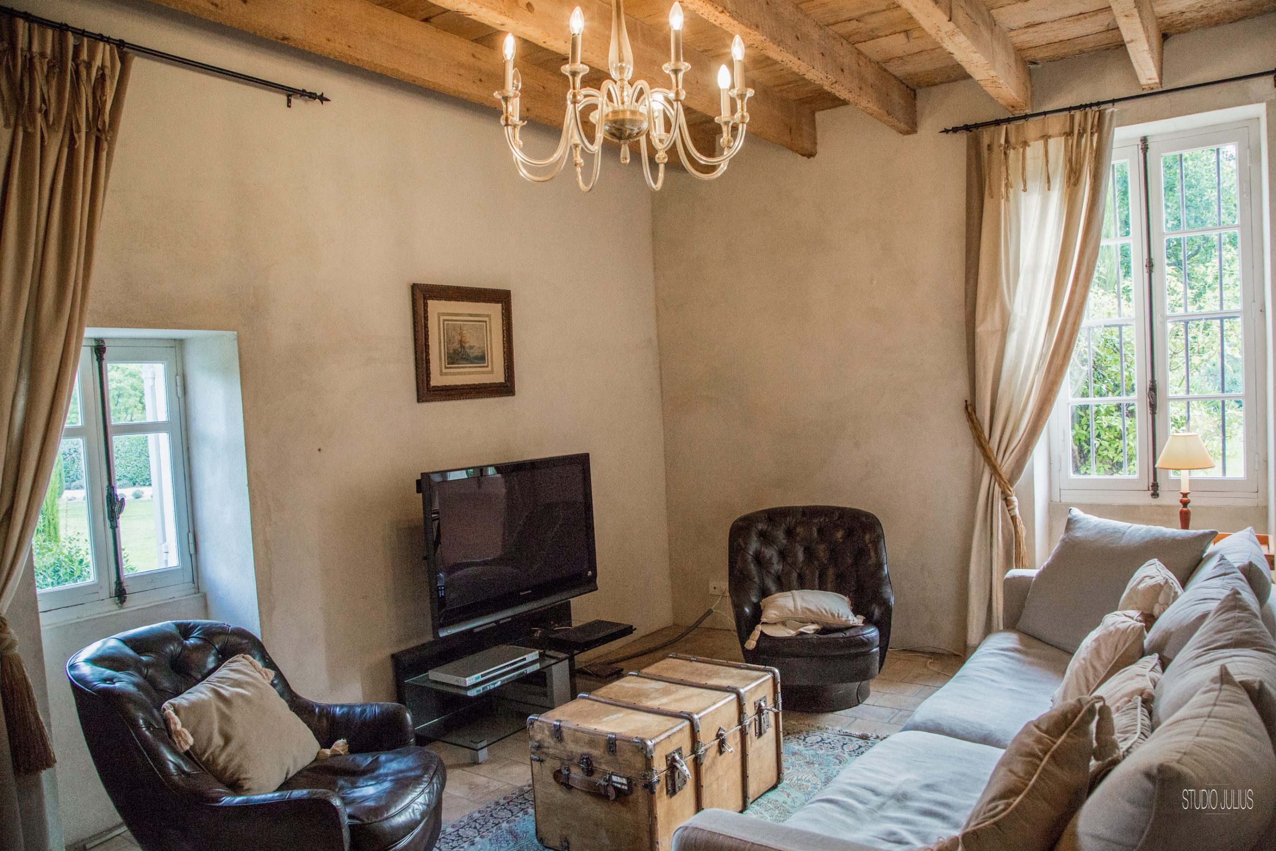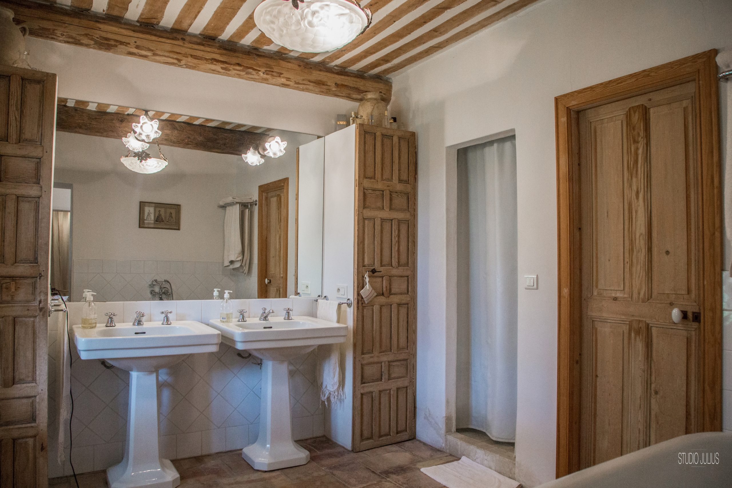 En effet, le rez de chaussée comprends les pièces de vie très vastes. La salle à manger de 35 m² avec une cheminée provençale de charme, une table pour accueillir les 10 convives. Puis, un salon de 45 m² avec cheminée, pour se détendre sur les canapés tout confort. Enfin, Un autre petit salon côté lecture et télévision. Pour finir, 2 escaliers magnifiques nous mènent à l’étage supérieur. Wc invité.