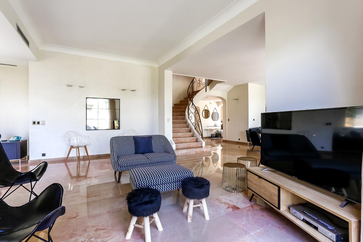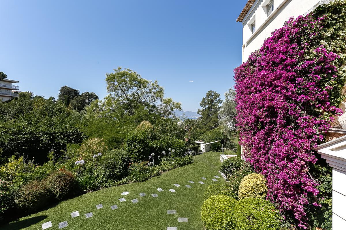 La maison bénéficie d’une situation privilégiée – nichée au bout d’une allée privée, au cœur d’une magnifique propriété arborée, dans le quartier dit de Californie, face à Cannes.