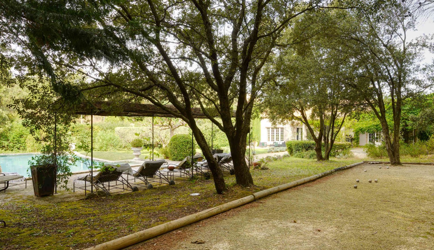 En fait, ce grand jardin de 3000 m² vous offre une sensation de bien-être à l’abri des regards en toute intimité. Puis, l’extérieur en relation direct avec l’intérieur de la villa donnent un espace de vie agréable. En effet, la terrasse ombragée à l’abri du mistral donne directement sur le gazon et la piscine chauffée de 10 M X 6 M. Puis, pour finir une bonne journée comme on est en Provence, on fait la partie de Pétanque sur le terrain de boule sous les pins en sirotant un bon apéritif.