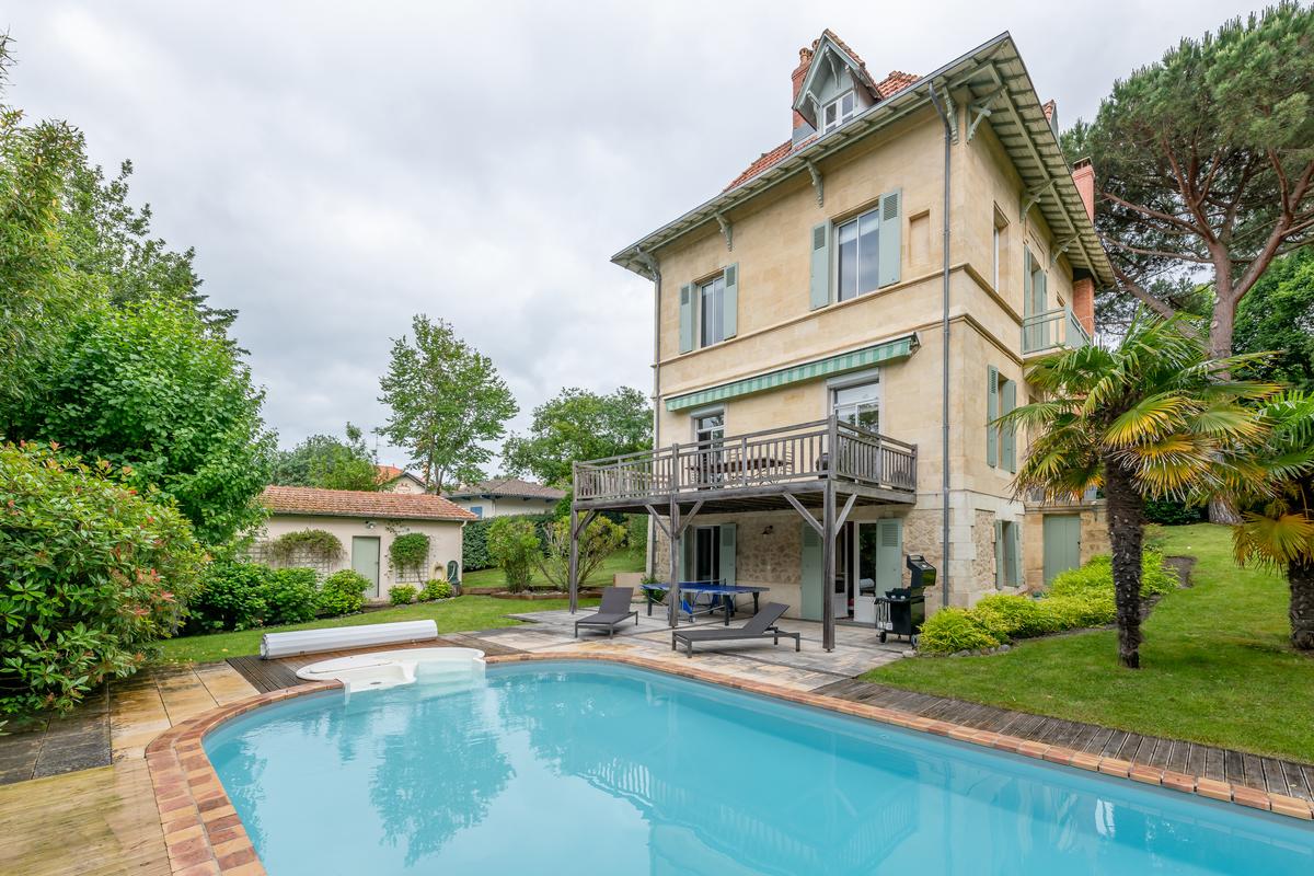 Location d’une villa de luxe avec piscine à Arcachon. Cette belle villa Napoléon III du 19ème siècle adopte le style qui a fait la renommée d’Arcachon à l’apogée de son succès : en plein centre ville, elle s’intègre parfaitement au décor de ce charmant lieu de villégiature à l’ancienne ! La propriété est située dans un quartier calme et dispose d’un beau jardin, avec piscine de 9,50×1,70m, chaises longues, barbecue, table de ping-pong, terrasse en bois avec table à manger : des équipements extérieurs exceptionnels qui permettent aux hôtes de profiter au maximum des belles journées sur le Bassin d’Arcachon.