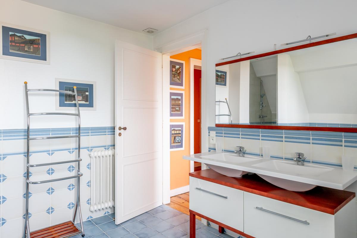 Le rez-de-chaussée de la villa abrite un salon, une salle à manger et une cuisine magnifiquement décorée. Il y a une première chambre avec salle d’eau au rez-de-jardin, et deux autres chambres, l’une avec salle de bain et salle de télévision-bibliothèque, au 1er étage. Au 2ème étage, sous les toits, il y a une salle de bain supplémentaire avec deux lits simples, parfait pour les enfants.