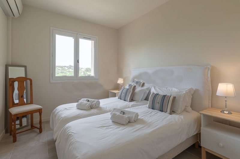 Cette jolie villa dispose de 4 chambres toutes climatisées. Mais aussi de 3 belles salles de douche, avec toutes les commodités. Les chambres sont confortables, 2 chambres doubles et 2 chambres avec lits jumeaux. En fait, les pièces de vies sont spacieuses avec un grand salon ouvert équipé d’un canapé spacieux pouvant accueillir 8 personnes. De plus, une belle cuisine entièrement équipée et une salle manger avec la table familiale.