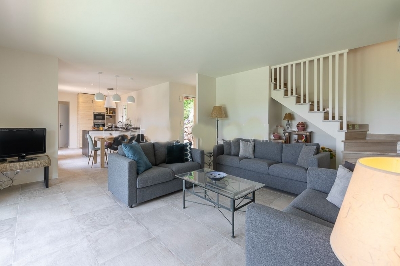 Cette charmante villa possède un beau jardin, des terrasses. Une grande piscine entièrement fermée pour la sécurité des enfants, vraiment un emplacement idéal pour des vacances en famille.