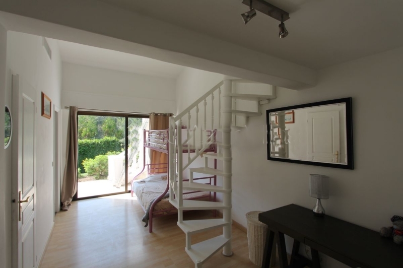 Une magnifique villa contemporaine située dans le prestigieux domaine résidentiel fermé des Parcs de Mougins, à quelques minutes en voiture du village pittoresque de Mougins et à 15 minutes de la côte. La villa dispose de quatre chambres dont une suite parentale avec salle de bains et portes-fenêtres donnant sur le jardin, une autre chambre double avec salle de douche et accès au jardin, une chambre pour enfants comprenant 2 lits superposés plus 2 autres lits simples en mezzanine, ainsi qu’un grand appartement avec lit double, kitchenette et accès indépendant. Au total, la villa peut accueillir jusqu’à 11 personnes, idéalement 6 adultes et 4 ou 5 enfants.