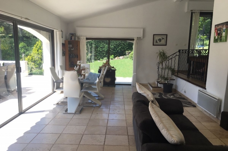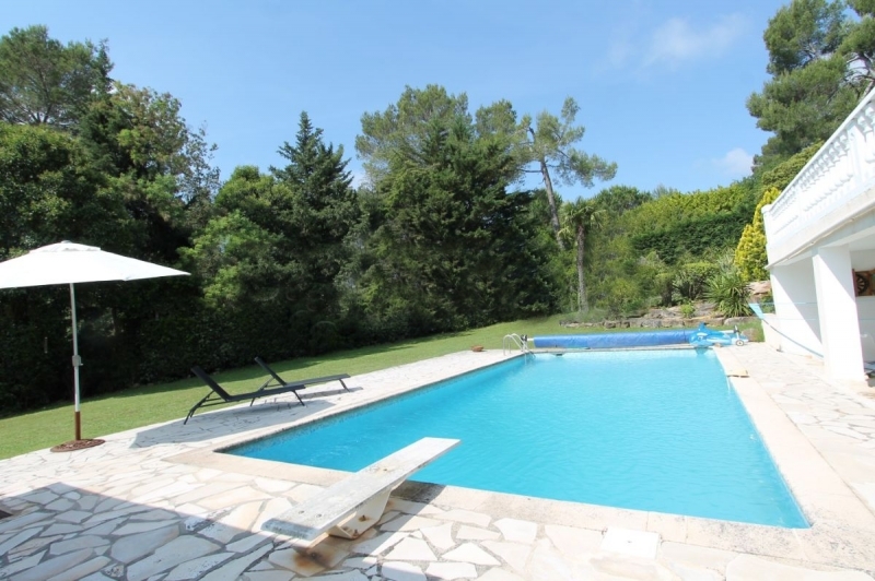 Située dans le prestigieux domaine des ‘Parcs de Mougins’ à quelques minutes du vieux village de Mougins et à 15 minutes de Cannes et de la côte, cette belle villa moderne dispose de 4 chambres, 4 salles de bains, climatisation dans toutes les pièces et d’une grande piscine au sein d’un luxuriant jardin de 3 500 m² avec pelouse.