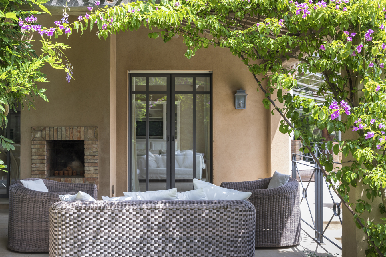Un magnifique jardin orné de Palmiers. Une grande pelouse jusqu’à la piscine entourée de chaises longues et de parasols. Un barbecue familial. La propriété est fermée par un portail électriques et le parking est sécurisé. Cette villa dispose d’une alarme de sécurité. Cette villa est entièrement climatisée.
