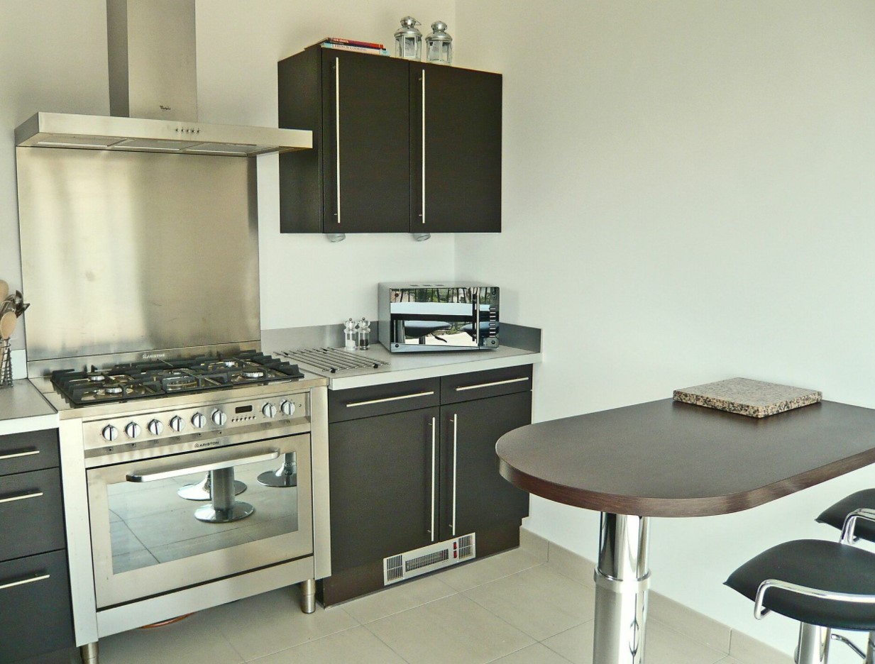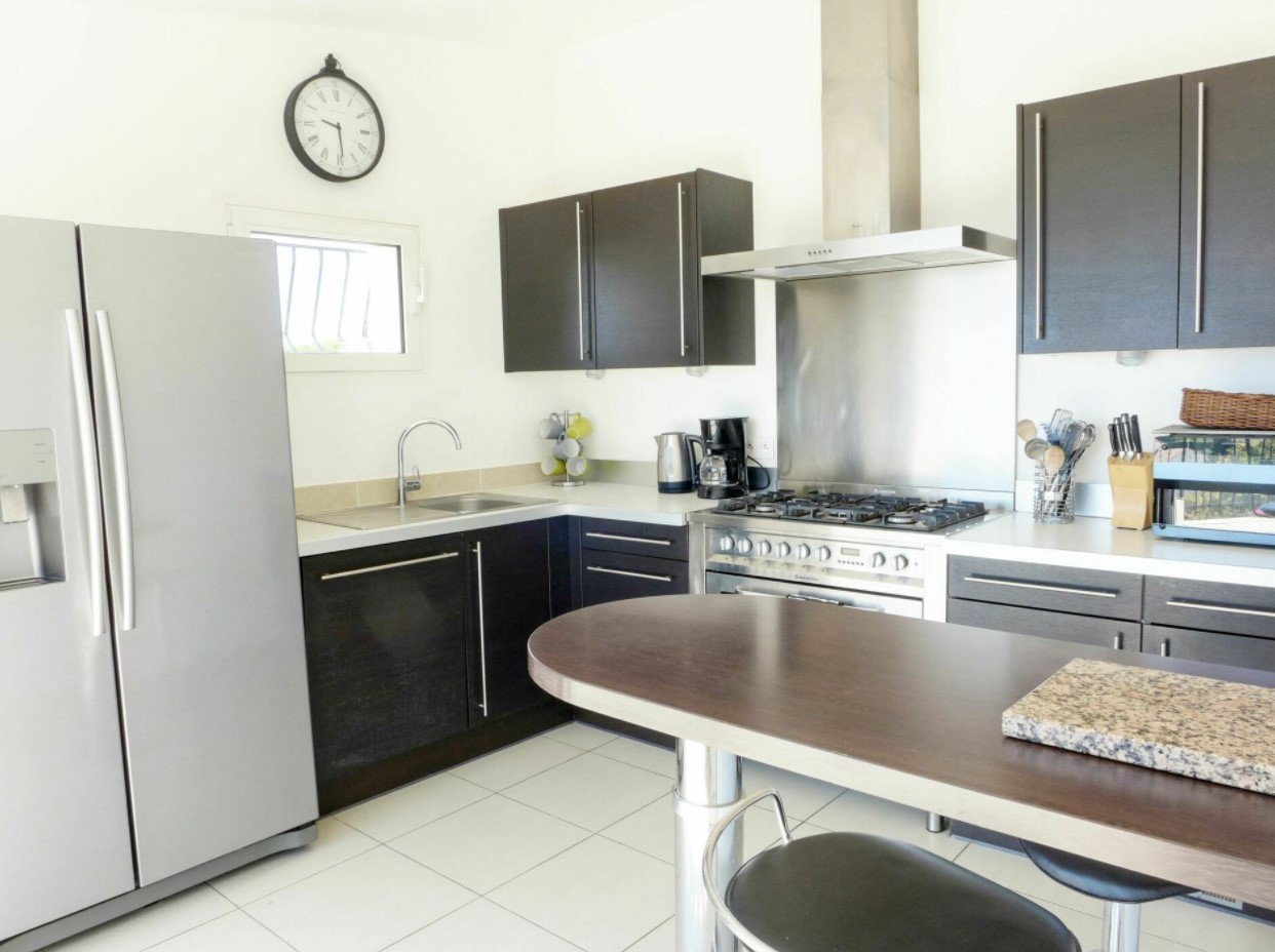 La villa Panoramique est conçue pour 8 personnes et s’étends sur 2 niveaux avec une superficie de 160 m². En fait, au niveau jardin, les pièces de vies avec salon et salle à manger donnant directement sur la terrasse. La cuisine ouverte sur salle à manger est bien meublée avec une grande table conviviale et accès direct à la terrasse. De plus, une chambre double avec ventilateur et accès direct sur la terrasse. Pour compléter, une salle de bain douche et wc séparé.