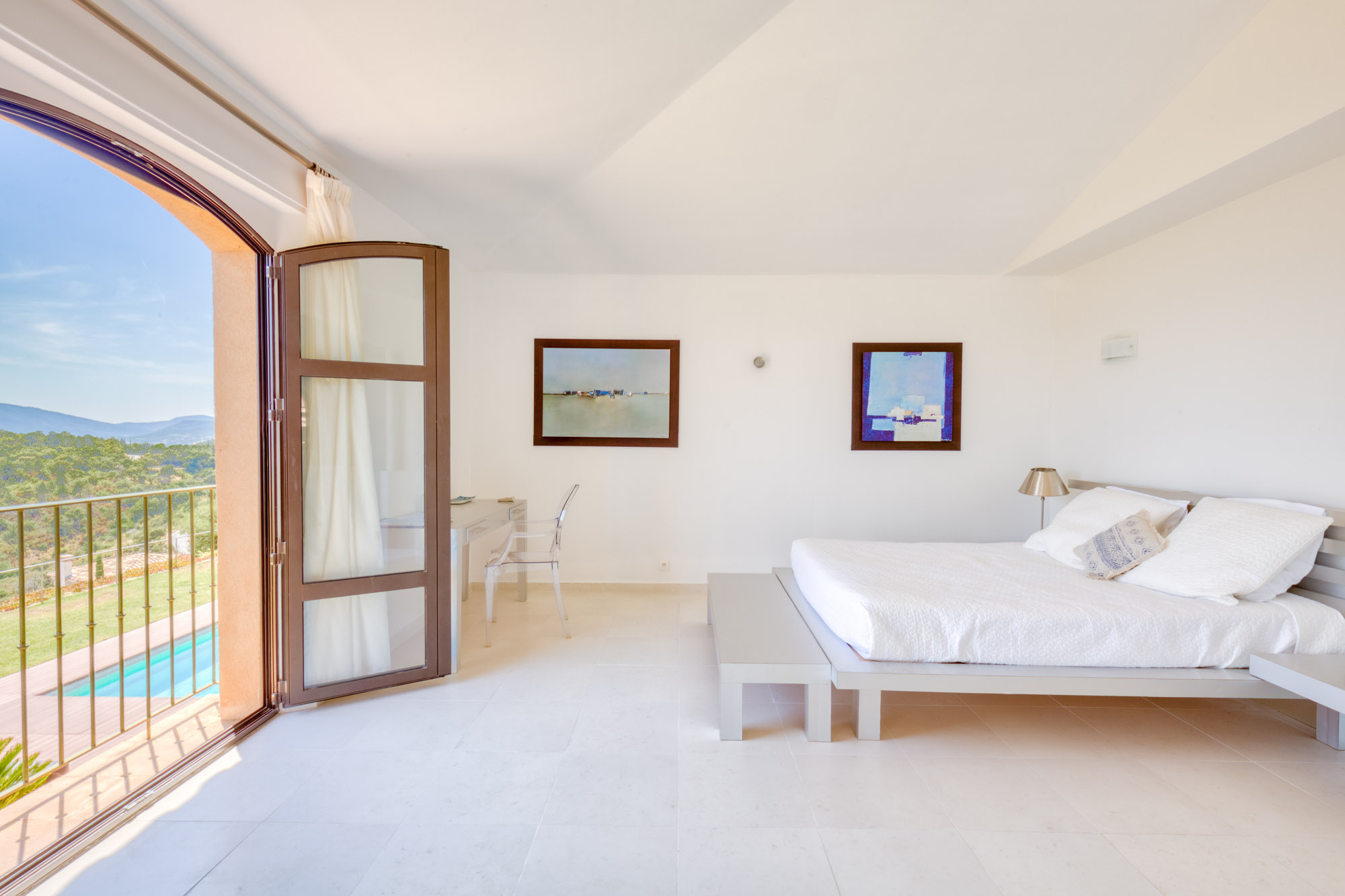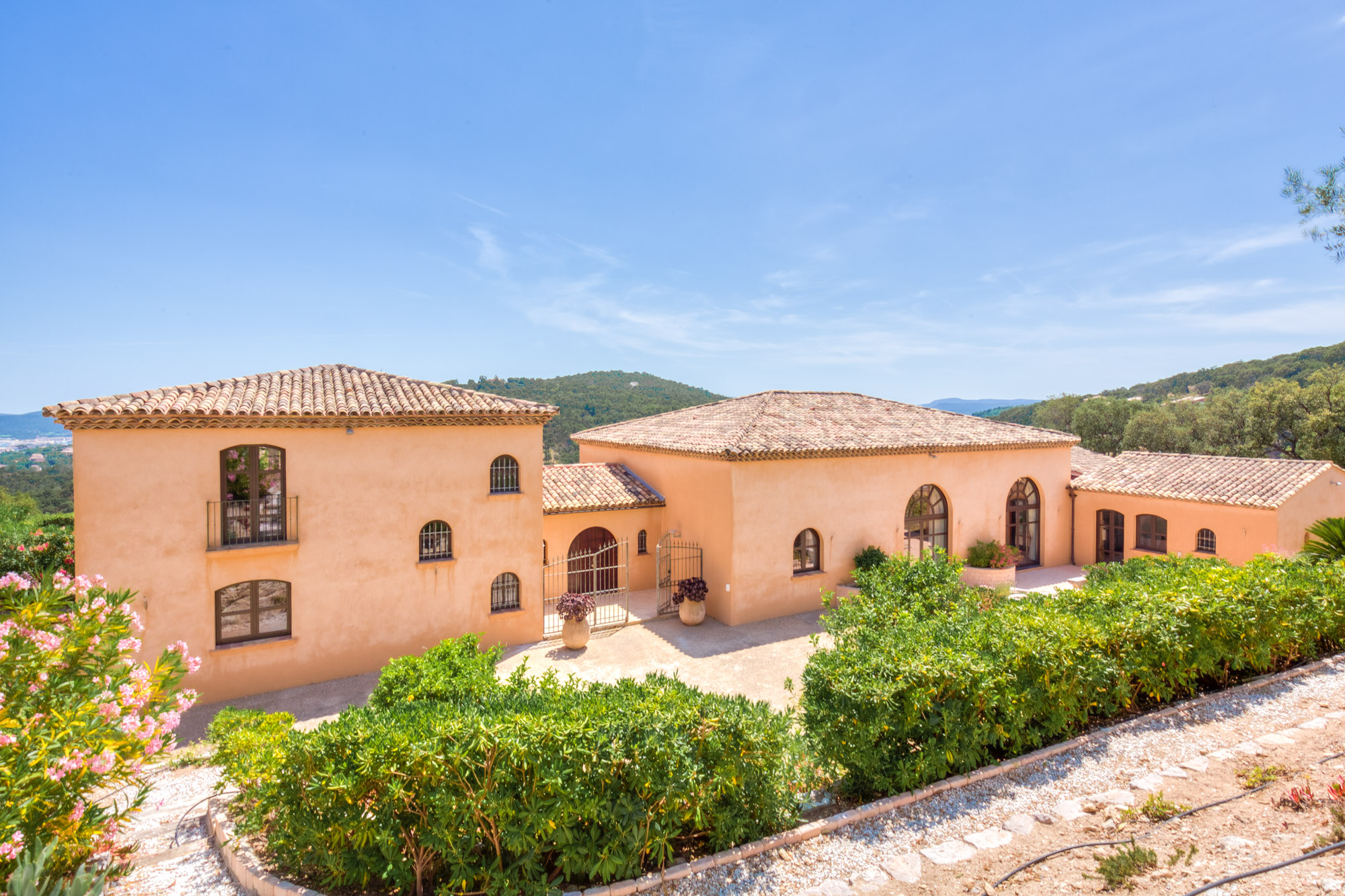 Au sommet de la colline, cette belle villa avec piscine, surplombe la vallée jusqu’à la mer.