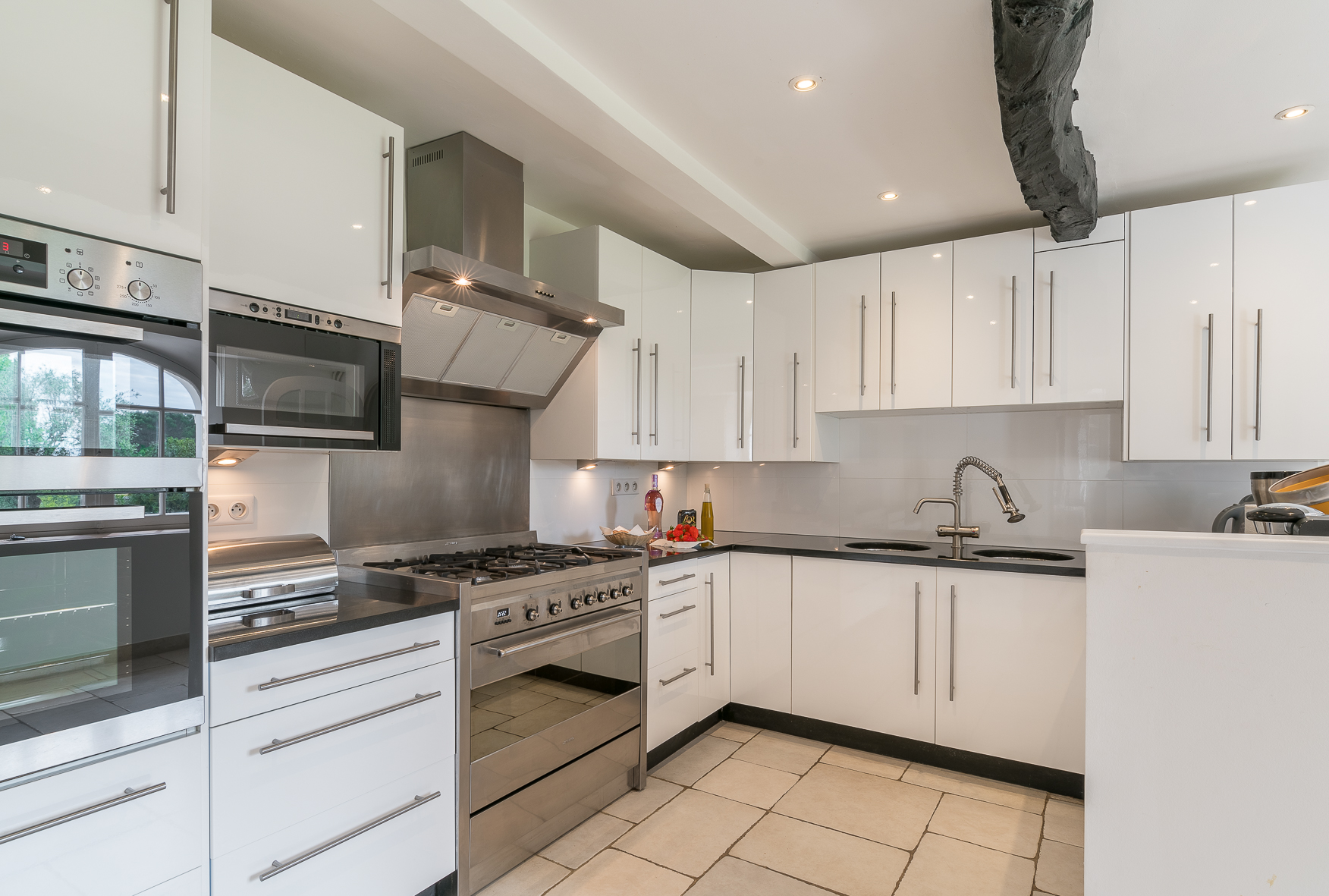 Des pièces de vie très spacieuses avec un grand salon, salle à manger donnant directement sur une belle terrasse aménagée pour les repas en famille ou entres amis. En effet, la terrasse est équipée d’une grande table familiale avec barbecue pour 10 à 12 convives. Puis, la cuisine ouverte est entièrement aménagée en toute modernité pour la préparation des repas.