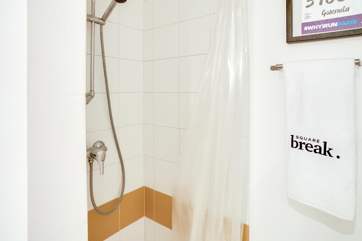 – Chambre 1 : grand lit double (140 cm), donnant sur une cour, salle de douche attenante – douche