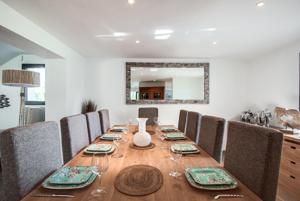 Un intérieur tout aussi harmonieux, où l’esprit moderne vient des meubles exotiques en bois fin, créant une sensation simple, zen et de haute qualité. En ouvrant les grandes baies vitrées du salon et des chambres à coucher, on voit le beau jardin d’herbes aromatiques, la piscine de 10x3m et la terrasse.