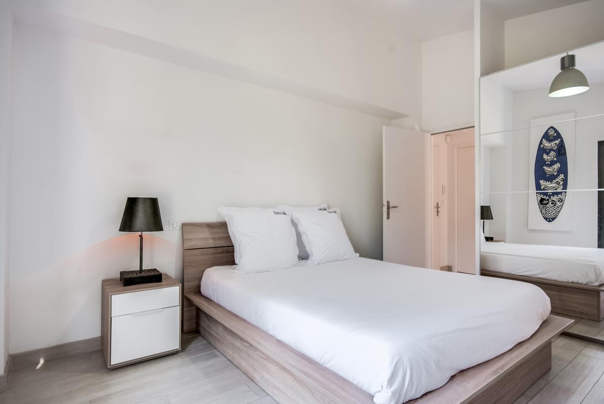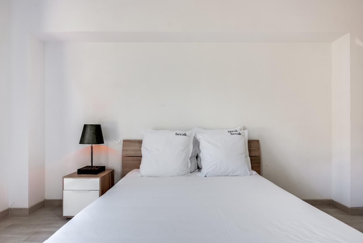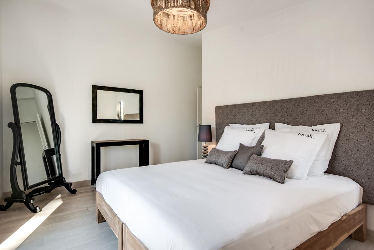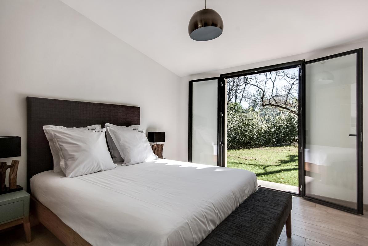 – Chambre à coucher 1 – lit queen (160cm), mène au jardin