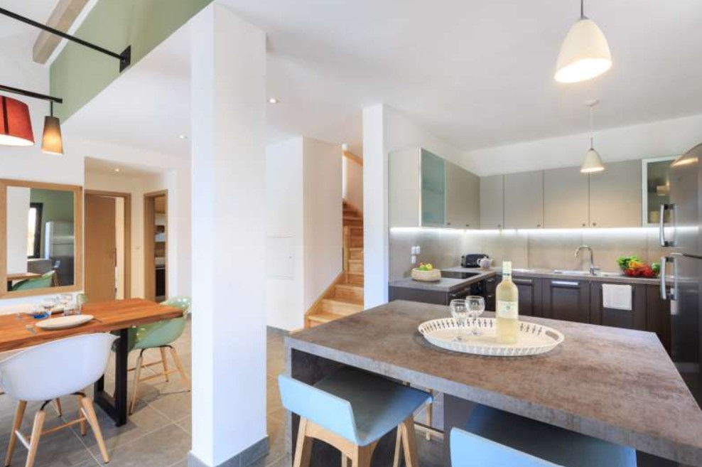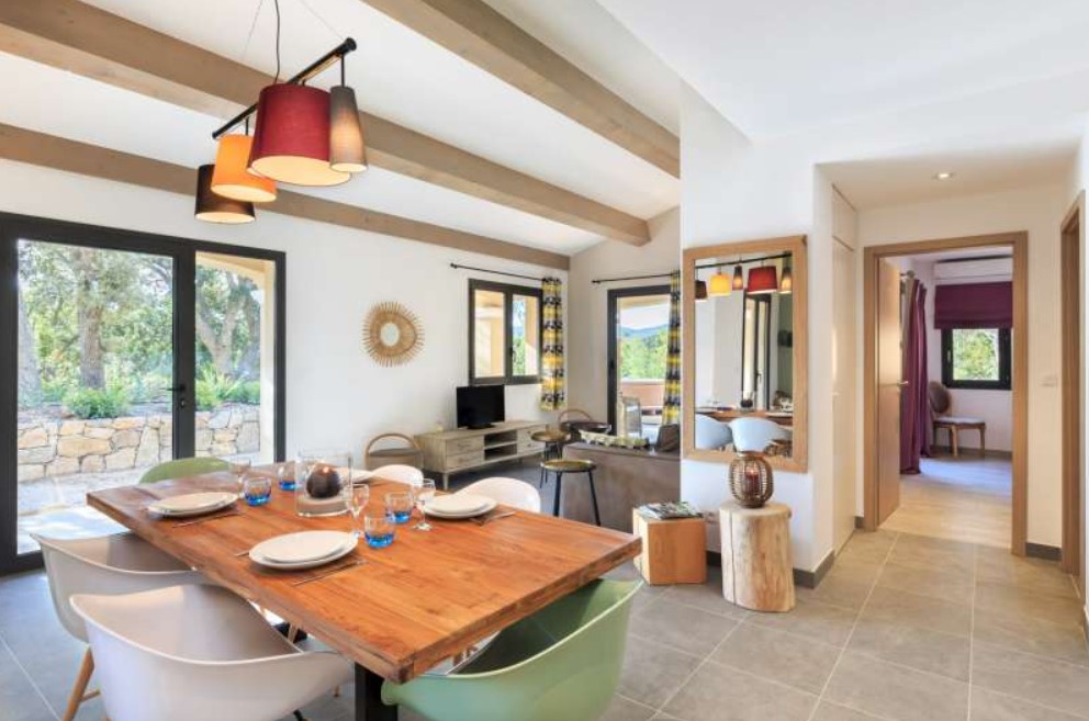 En effet, cette villa de 100 m² pour 6 personnes, 3 chambres et 2 salles de bain avec linge de toilette. En fait, cette villa Fagales est idéale pour bien vivre en vacances avec des pièces de vies spacieuses et de grandes baies vitrées qui donne une belle luminosité. Puis, la cuisine entièrement équipée avec du matériel haut de gamme.