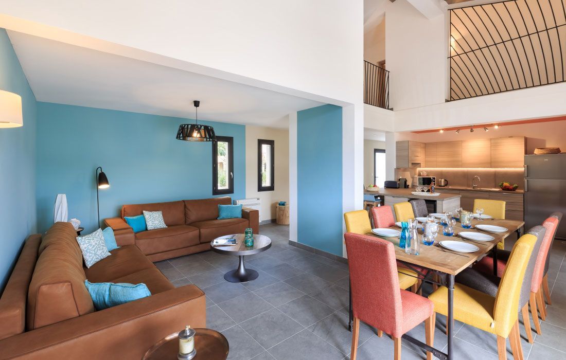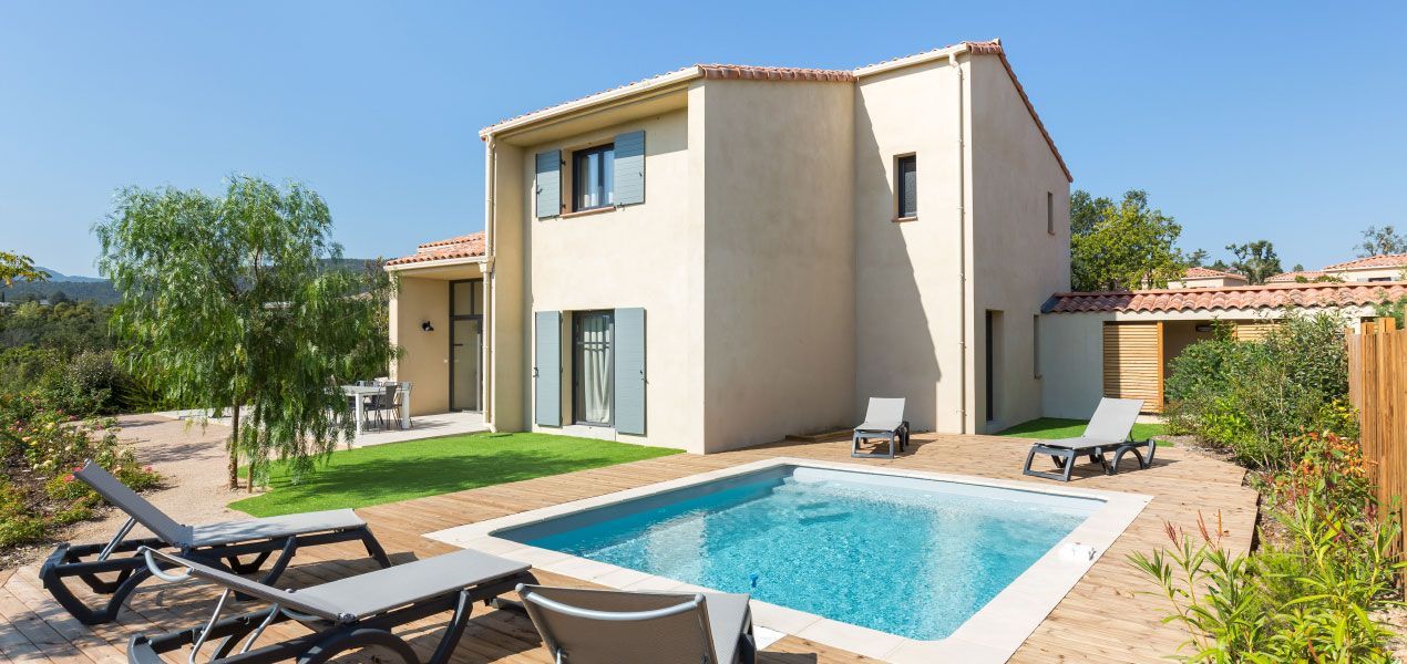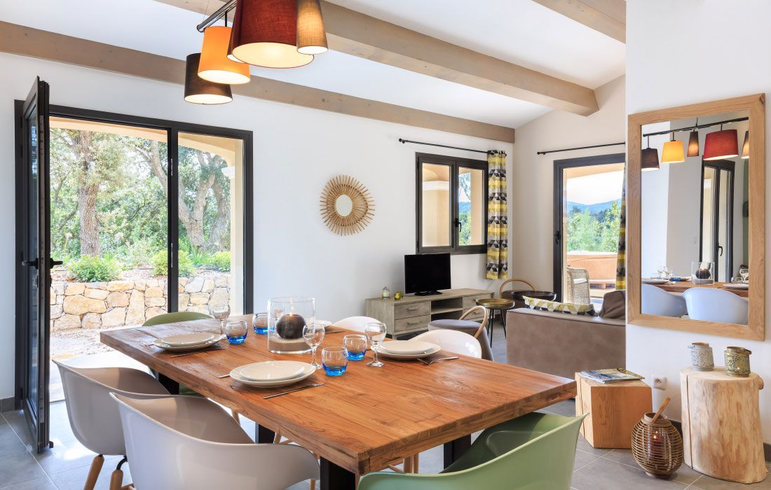 Maison 6 personnes : Adossée à la colline ponctuée de chênes lièges ces maisons à l’esprit Provençal, idéalement conçues pour la famille, s’organisent tournées vers le sud au milieu de leur Jardin Méditerranéen. De plus, intimité et moments partagés, chacun trouvera l’espace pour savourer un moment unique. Climatisée, connexion WIFI et ménage inclus.