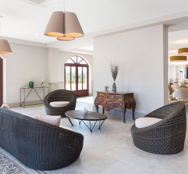 Coté grande bastide une salle de réception de 300m² intérieurs pour une capacité assise de 120 places et 1000m² d’espaces extérieurs variés : patio, esplanade, jardins.