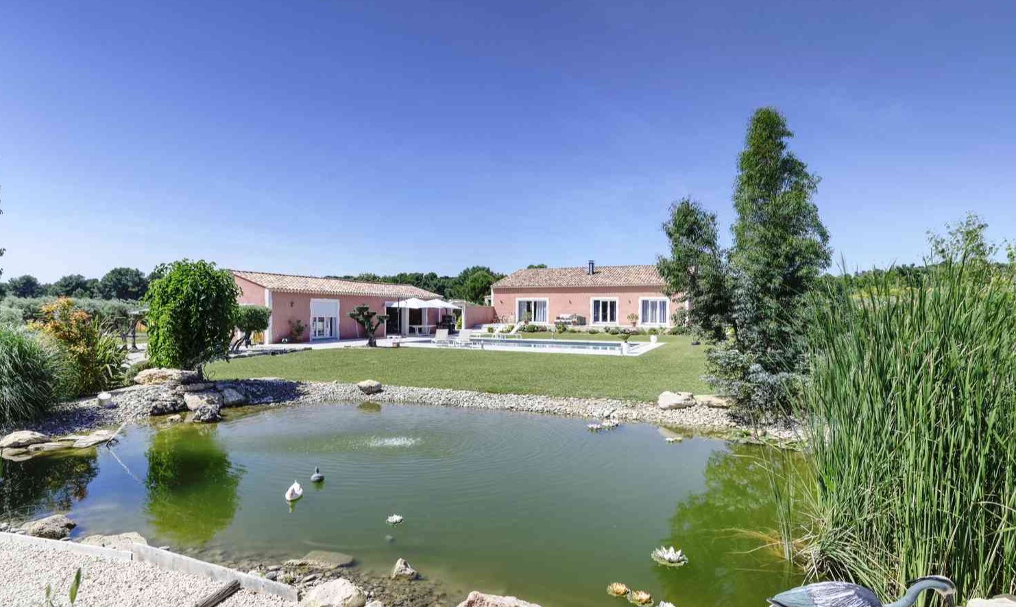 Très joli endroit devant une oliveraie roi de cette région, l’olivier est l’emblème de la Provence. Puis, les propriétaires ont aménagés un point d’eau décoratif avec des canards ce qui fait le plaisir des enfants.