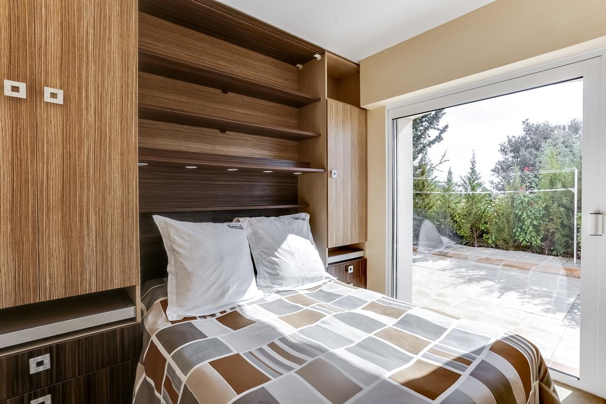 5 Chambres doubles avec salle de bain et accès direct sur l’extérieur.
