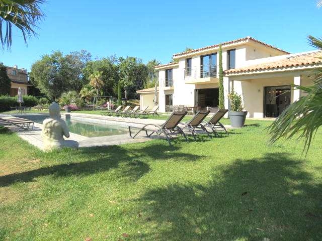Pour vos vacances, louer cette belle villa de luxe avec piscine, dans le fabuleux domaine de Beauvallon. Le panorama est à couper le souffle, une vue imprenable sur la mer. Un magnifique endroit avec un parcours de Golf apprécié de tous. Cette villa est chic et contemporaine avec de nombreuses prestations pour rendre vos vacances très confortable.