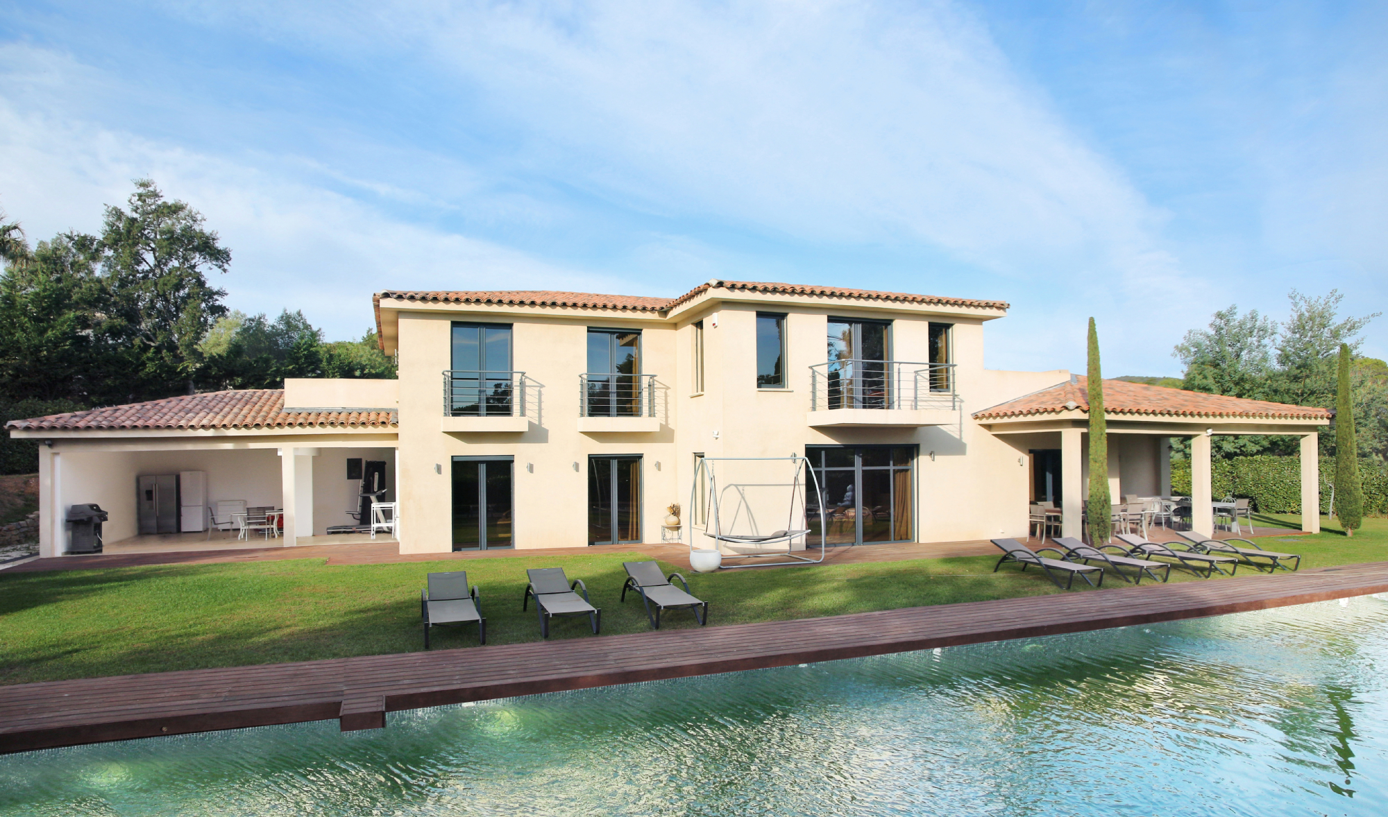 Louer cette villa avec une merveilleuse piscine de 15 m de long sur 5 m. Pour vous détendre, un jacuzzi de 3 m sur 3, un pool house avec coin repas, un barbecue électrique. De plus, un salon confortable qui permet un moment convivial. Une maison de vacances entièrement climatisée. La domotique est présente avec un portail électrique, visiophone et système d’alarme compétitif.