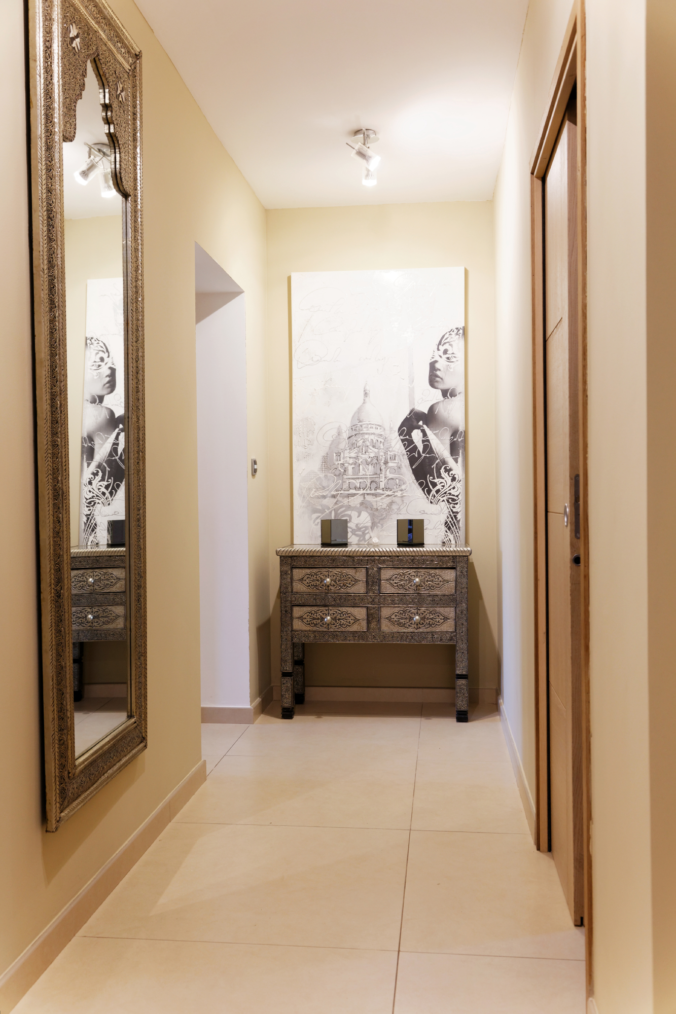 Au rez de chaussée, un couloir qui mène au salon, salle à manger très spacieux. La salle à manger débouche sur une cuisine entièrement équipée, tout à fait fonctionnelle pour les marmitons. Puis se trouvent 2 chambres doubles partageant une salle de bain. puis au même niveau, on trouve un bureau permettant de régler les affaires courantes pour ceux qui le souhaite.